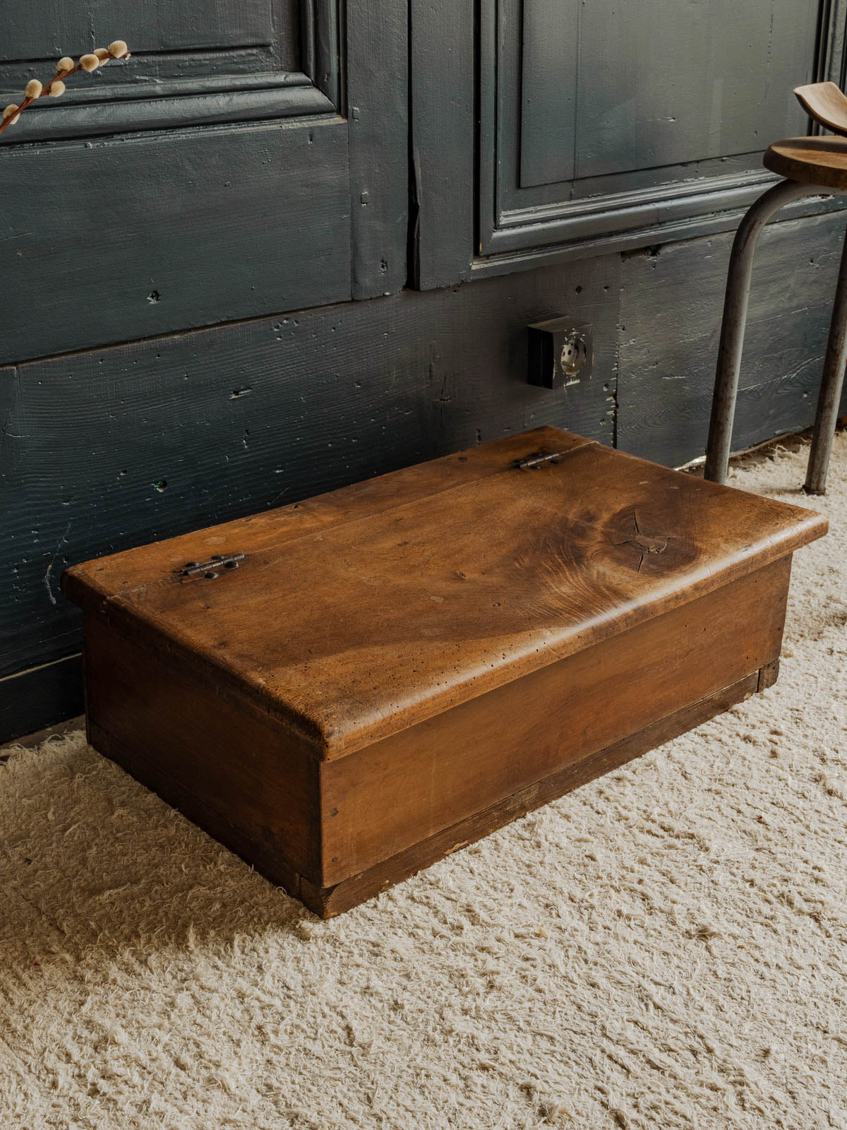 Découvrez ce coffre en noyer du 18ème siècle, une pièce unique alliant fonctionnalité et esthétique. Son plateau se soulève pour révéler un espace de rangement pratique, tandis que le bois craquelé par le temps lui confère un charme authentique. Sa belle patine et son allure intemporelle en font un choix idéal pour apporter du caractère à votre intérieur, tout en préservant son usage au quotidien.