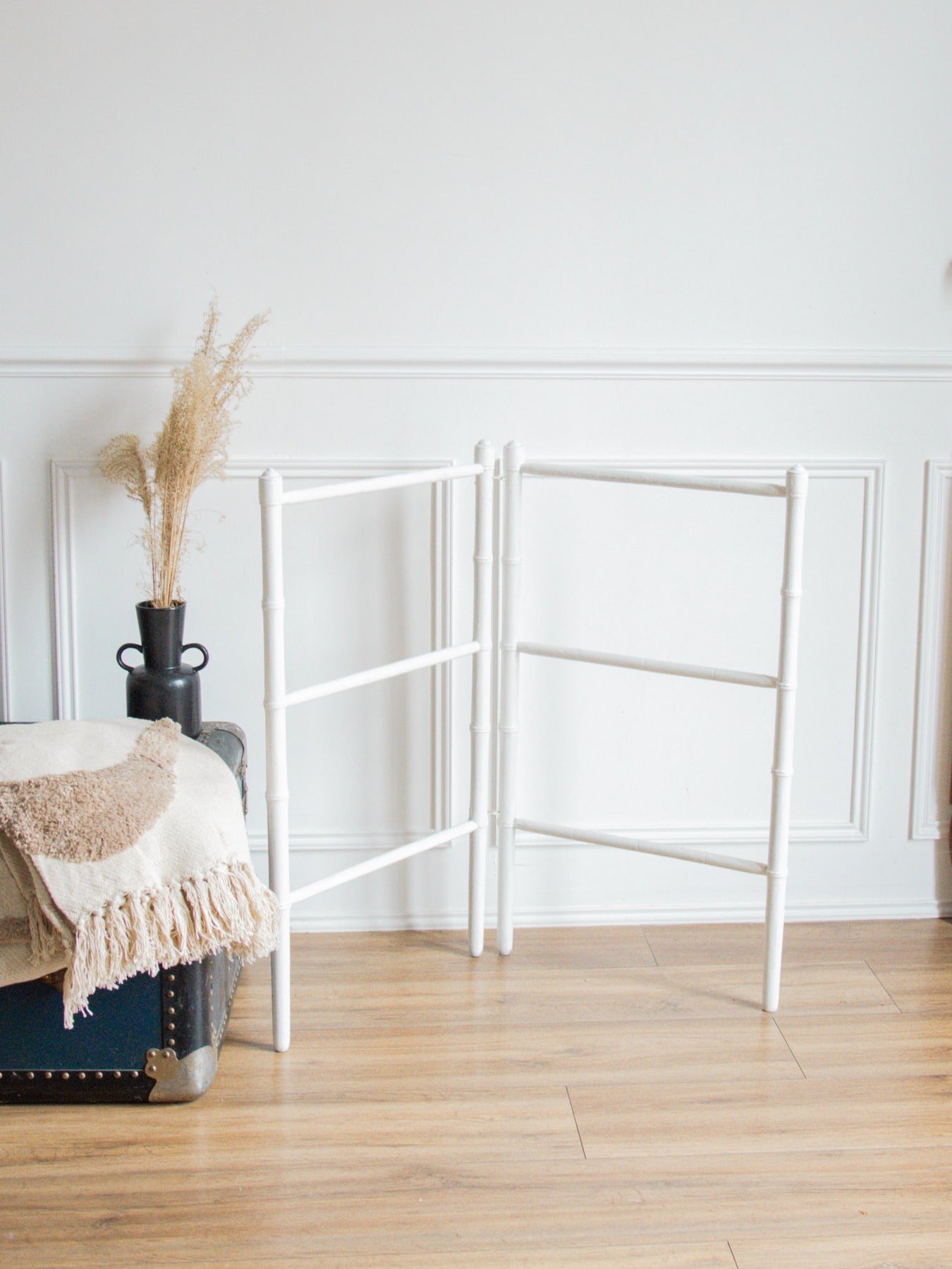 Ajoutez une touche d'élégance et de fonctionnalité à votre salle de bain avec notre porte-serviettes en bambou peint en blanc. Son design modulable vous permet de l'adapter à vos besoins, tout en préservant un style épuré et moderne. Fabriqué à partir de bambou durable, cet accessoire allie esthétisme et respect de l'environnement, rendant votre espace à la fois chic et pratique. Offrez à vos serviettes un rangement à la fois élégant et organisé.