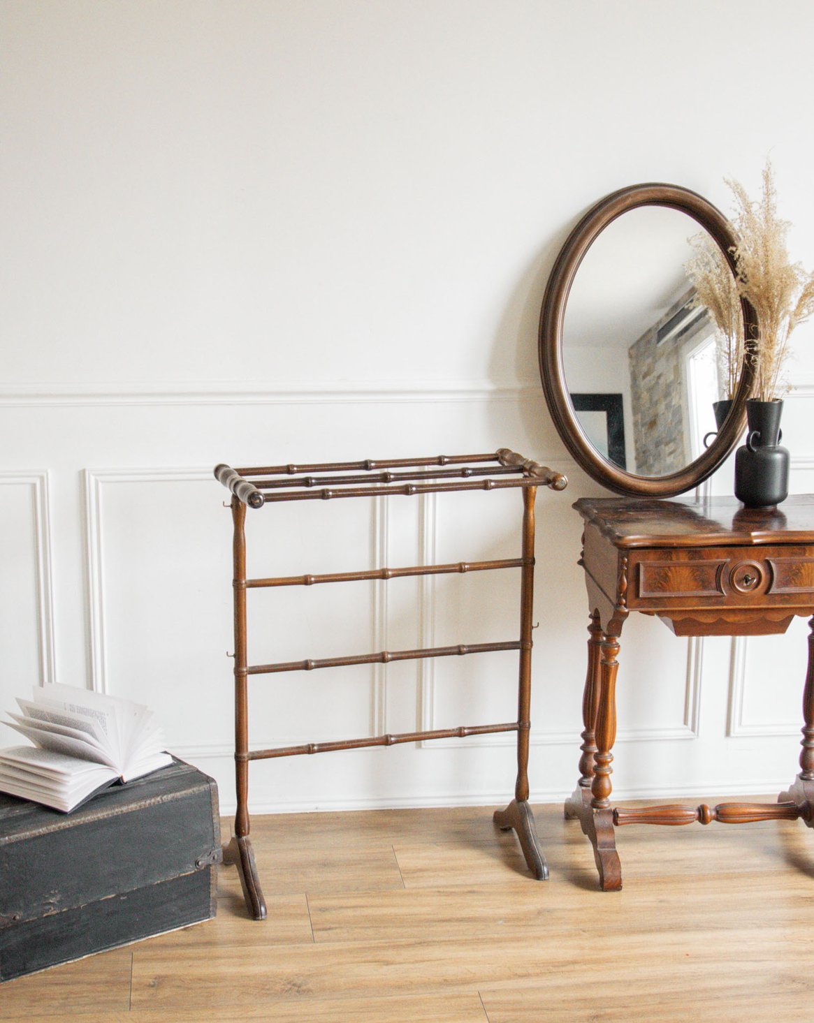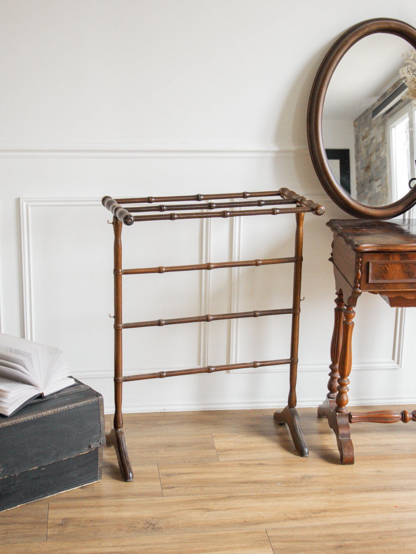 Découvrez notre porte serviette en bois avec crochet, un accessoire pratique et élégant pour votre intérieur. Bien que cet article présente quelques légers endroits abîmés, cela n'altère en rien sa fonctionnalité ou son charme authentique. Idéal pour suspendre vos vêtements délicats ou simplement ajouter une touche déco à votre espace, cet étendoir allie esthétisme et utilité.