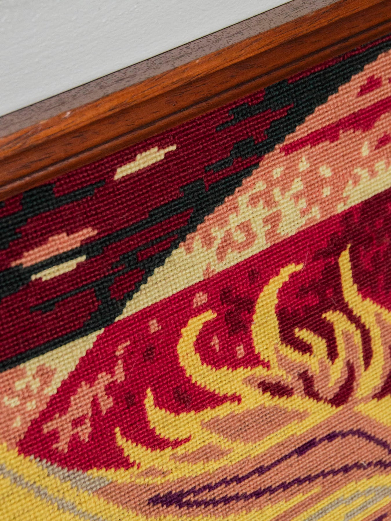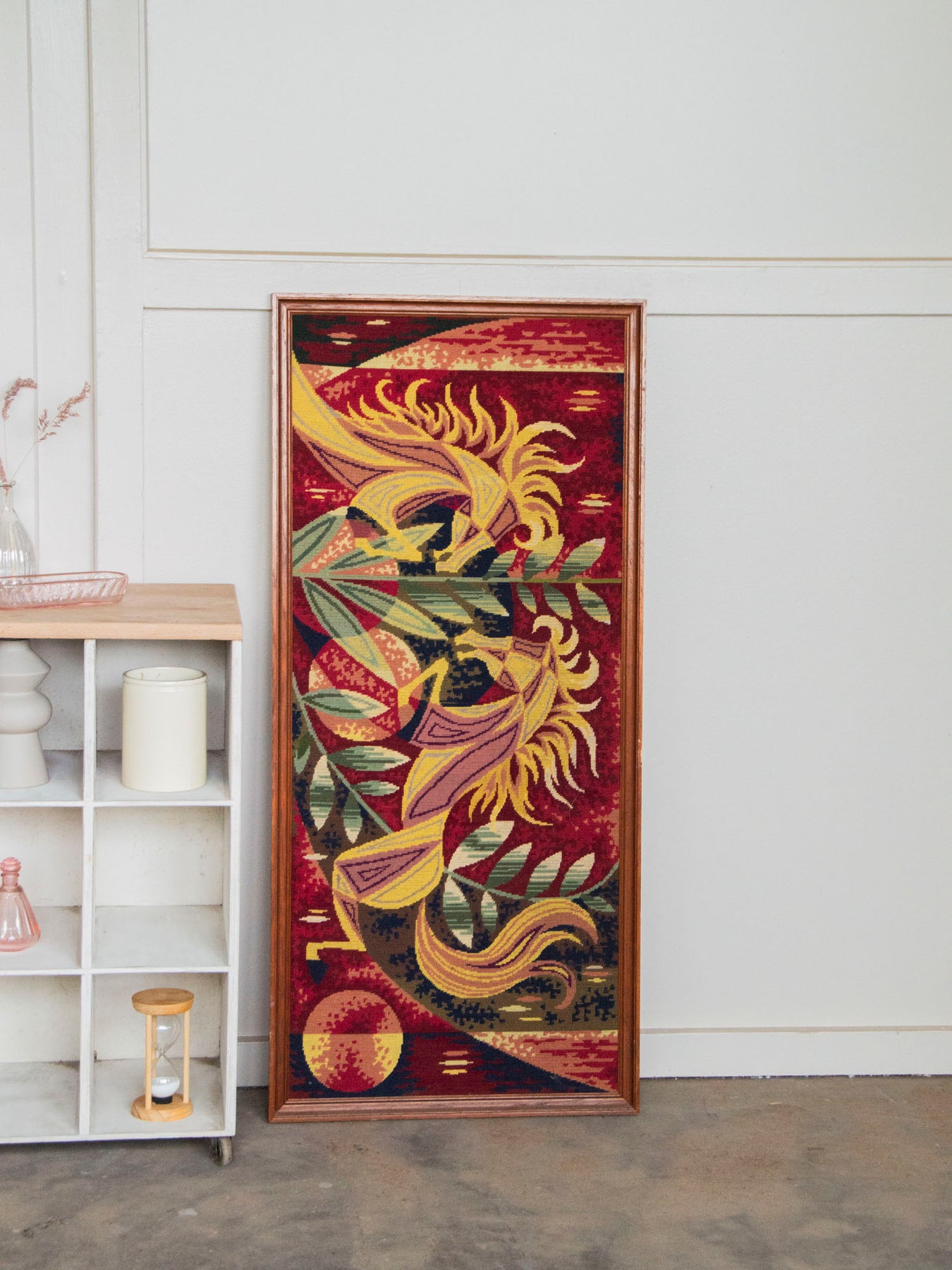Ajoutez une touche d'élégance et de couleur à votre intérieur avec cette magnifique tapisserie encadrée multicolore. Dotée d'un cadre en bois foncé, cette œuvre d'art représente des chevaux dessinés avec finesse, apportant une atmosphère dynamique et chaleureuse à n'importe quelle pièce. Parfaite pour les amateurs d'équitation ou ceux en quête d'un décor original, elle saura captiver tous les regards. Transformez votre mur en un véritable Chef-d'œuvre !