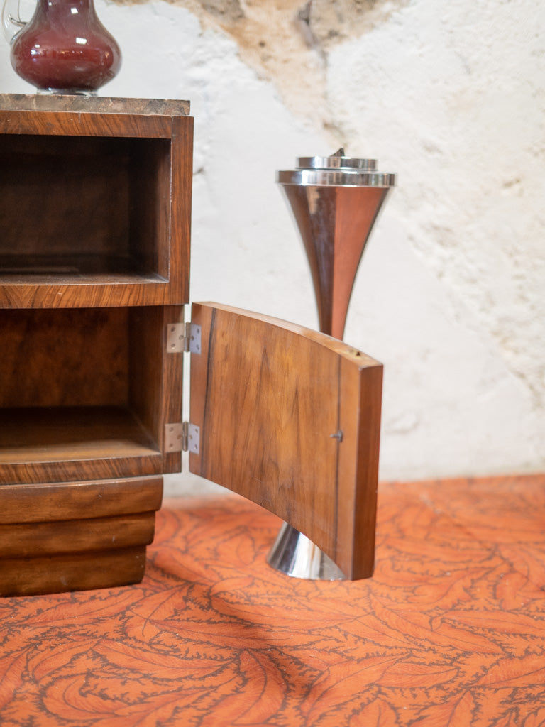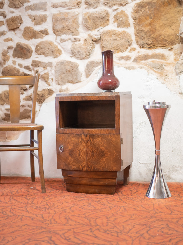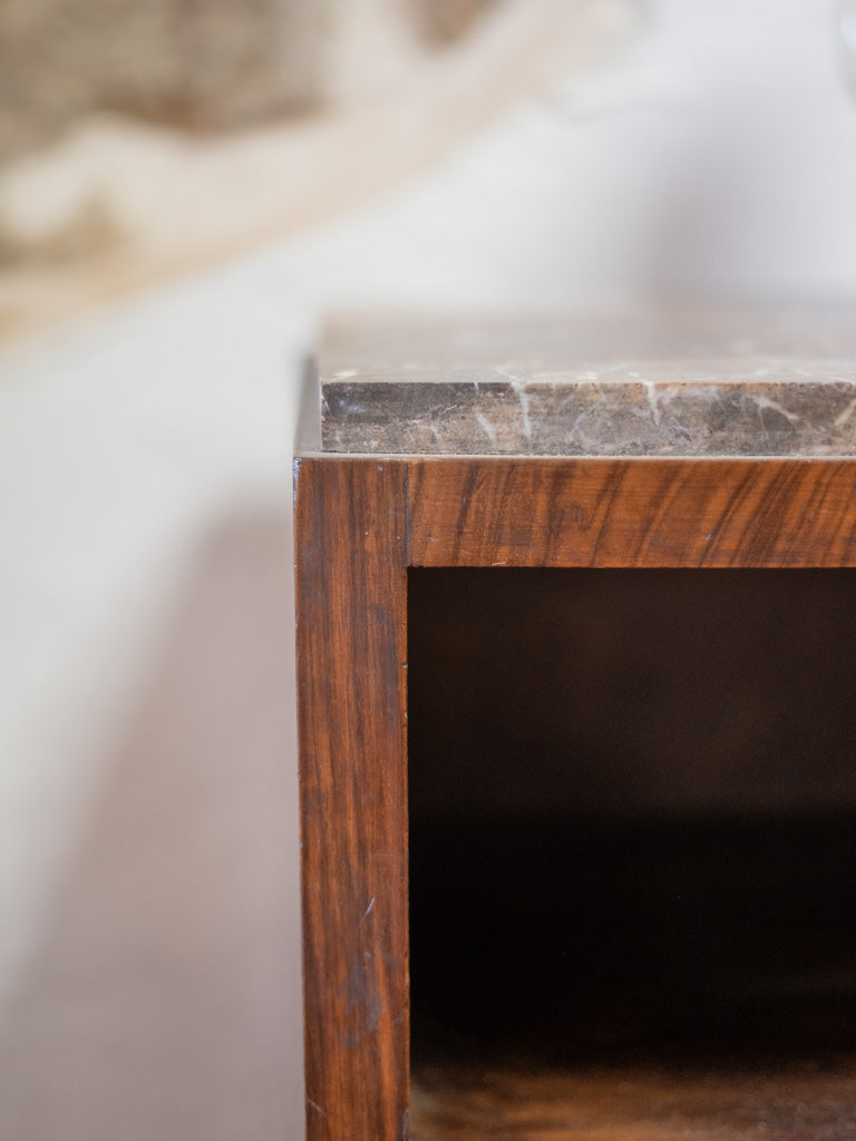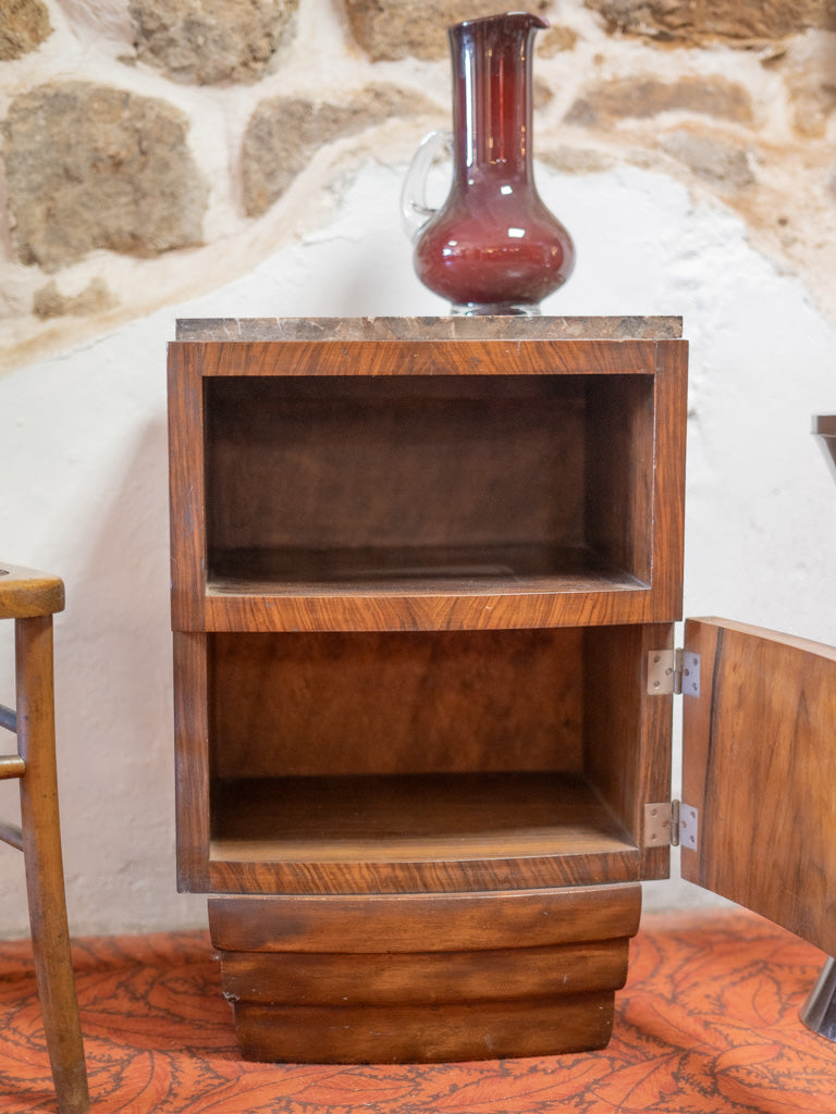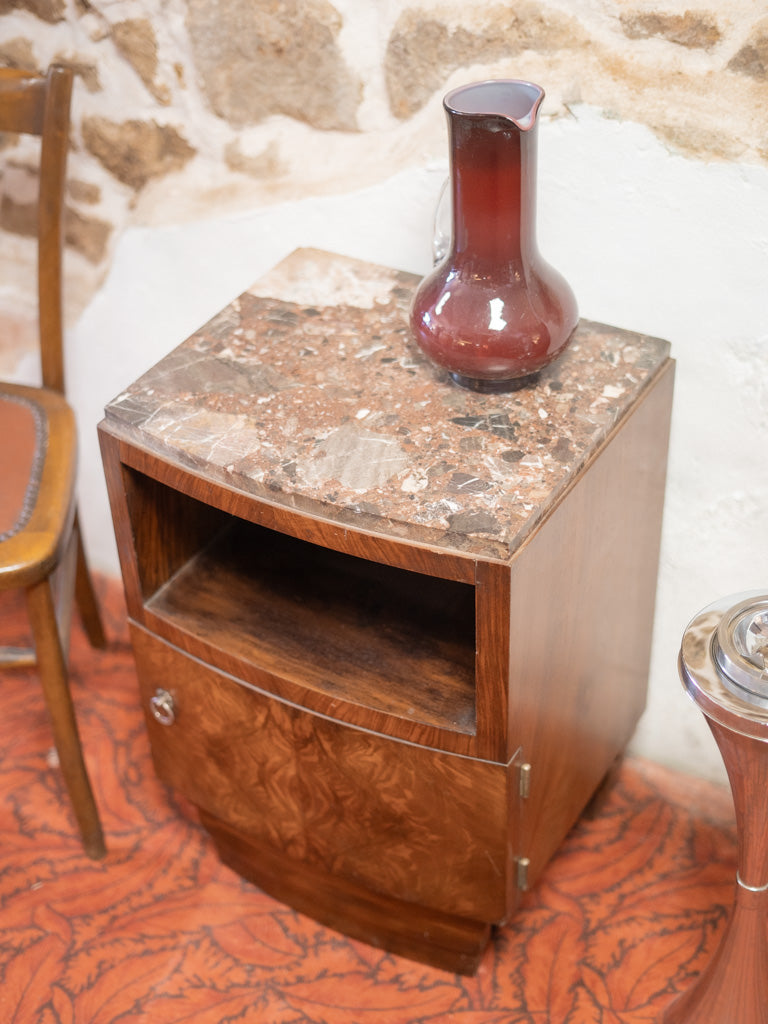 Découvrez notre chevet en bois alliant élégance et sophistication, avec un plateau en marbre qui apporte une touche de charme intemporelle. Ses lignes géométriques raffinées et ses finitions soignées en font un meuble idéal pour sublimer votre chambre. Pratique et esthétique, ce chevet offre un espace de rangement tout en ajoutant du caractère à votre décoration intérieure. Un indispensable pour ceux qui apprécient le style art déco.