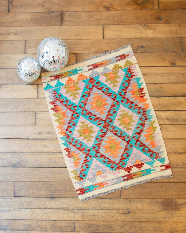 Apportez du charme à votre intérieur avec ce tapis Kilim, une pièce artisanale fabriquée à la main en laine. Ses motifs géométriques et son mélange harmonieux de couleurs claires et foncées lui confèrent une allure unique. De petite taille, il s’adapte parfaitement à tous les espaces. Ses franges discrètes sur les côtés apportent une finition délicate et traditionnelle. Un tapis authentique pour une décoration chaleureuse !