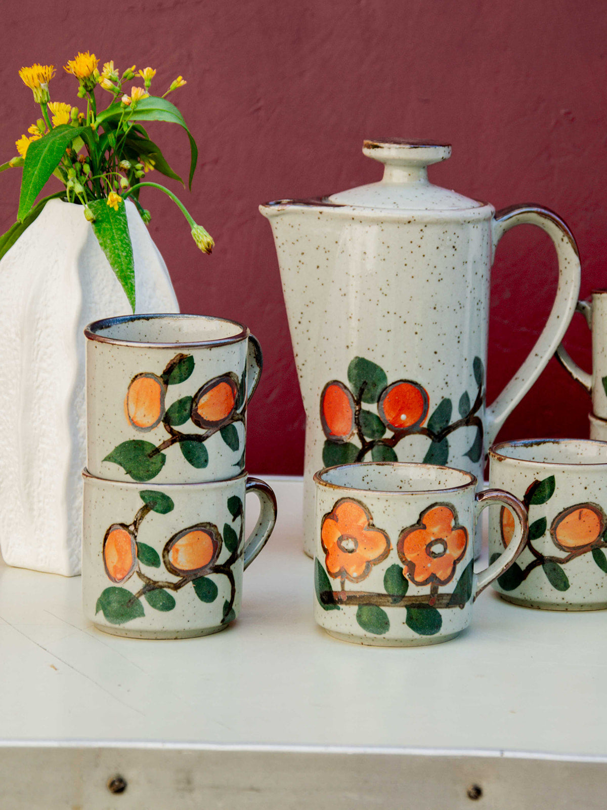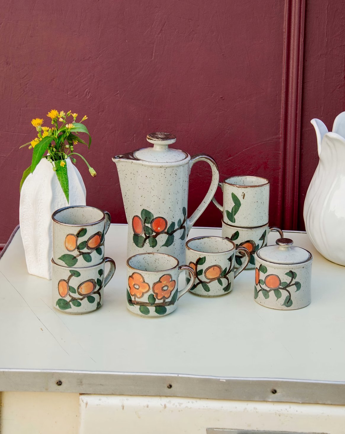 Apportez une touche d’élégance à vos pauses café ou thé avec ce ravissant service en grès gris tacheté. Composé d’une théière au design délicat, accompagnée de six tasses et d’un sucrier, cet ensemble dévoile de subtils motifs artisanaux inspirés d’un arbre fruitier en fleurs, alliant chaleur et modernité. Parfait pour partager des instants conviviaux avec style, il transforme chaque moment en une expérience esthétique et pleine de douceur.