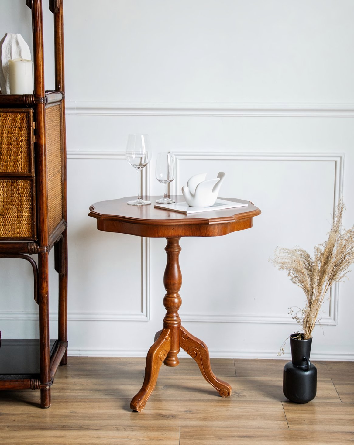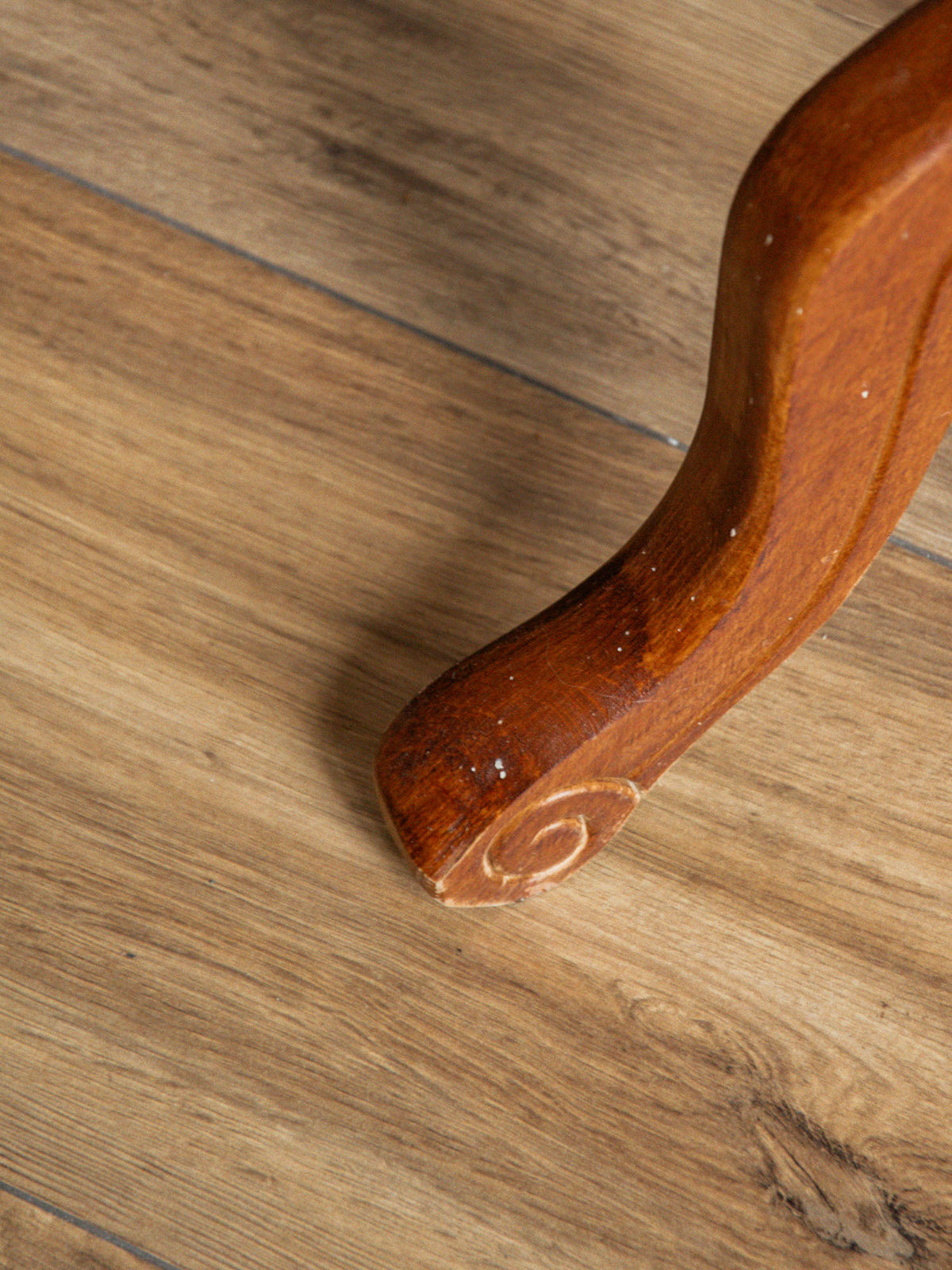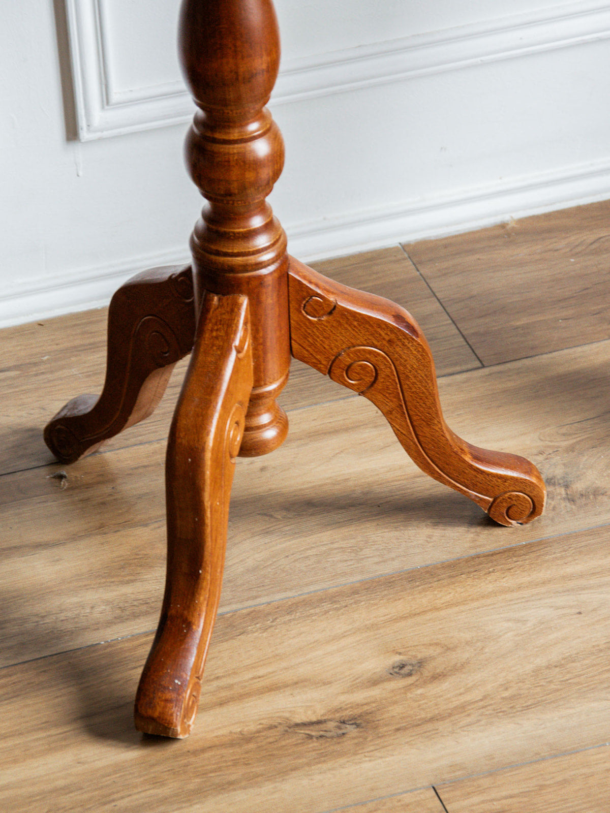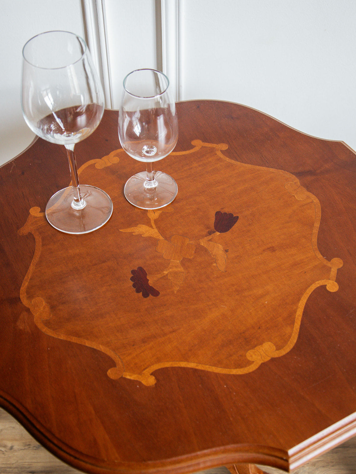 Guéridon en bois aux lignes élégantes, porté par un piétement tripode et un plateau joliment travaillé. On aime les détails de marqueterie et le jeu de teintes qui apportent du relief et du caractère à la pièce. Parfait en bout de canapé, dans une entrée ou pour exposer un bel objet, ce petit meuble au charme discret trouve sa place partout dans la maison.