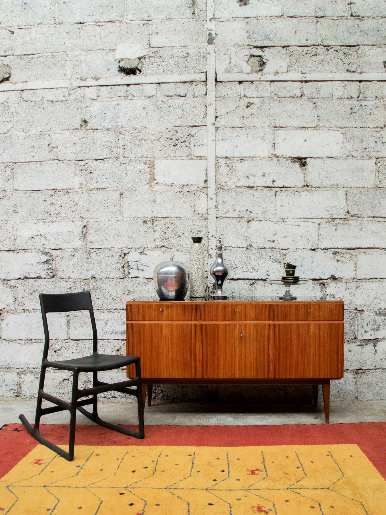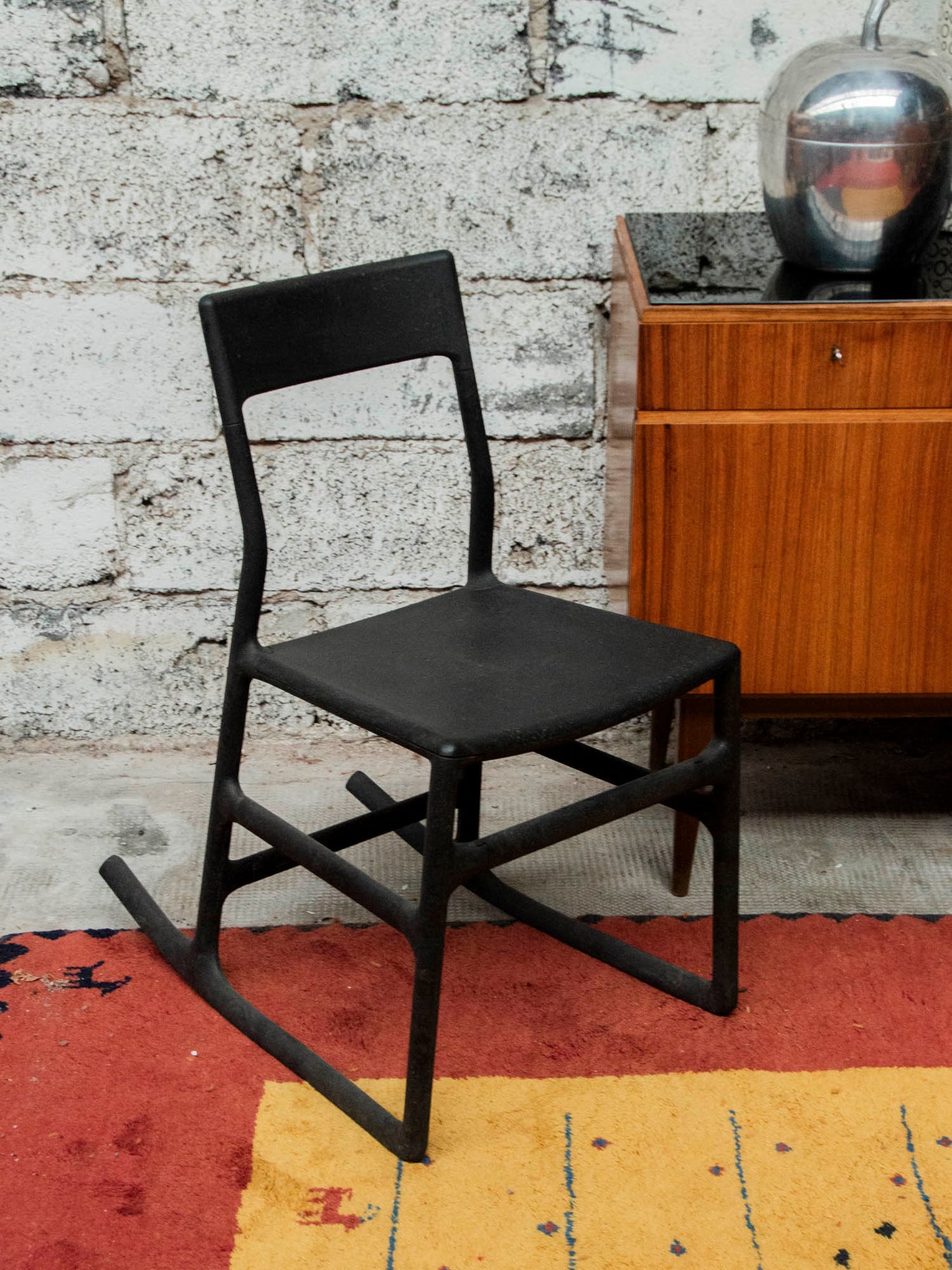 Découvrez ce rocking chair noir vintage d'Ikea, un véritable bijou pour votre intérieur. Avec ses lignes épurées et son design intemporel, il apporte une touche d'élégance à n'importe quelle pièce. Bien que des signes d'usure et une légère poussière incrustée soient présents, cela ne fait qu'ajouter au charme de ce meuble au caractère unique. Parfait pour un moment de détente, ce rocking chair allie confort et style rétro.