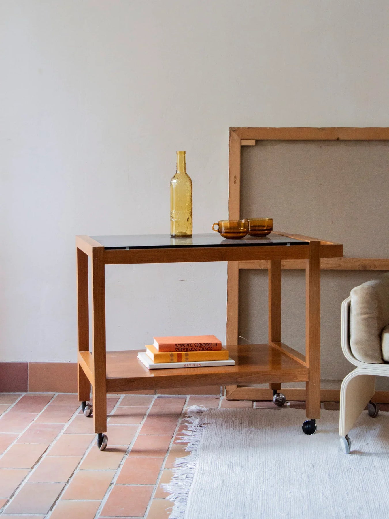 La desserte, aussi appelée table servante, voit le jour au XVIIème siècle. À l’époque, elle est utilisée pour servir et desservir les plats et la vaisselle aux cours des repas. Munie de roulettes, elle se transfère d’un endroit à l’autre sans effort et permet de débarrasser la table plus rapidement en réduisant le nombre de trajets entre la salle à manger et la cuisine. C’est par sa grande utilité que la desserte est devenue un élément important du mobilier, servant aussi à servir le thé ou le petit-déjeuner. Cette petite table d’appoint mobile a su trouver au fil des siècles une place de choix dans notre intérieur.