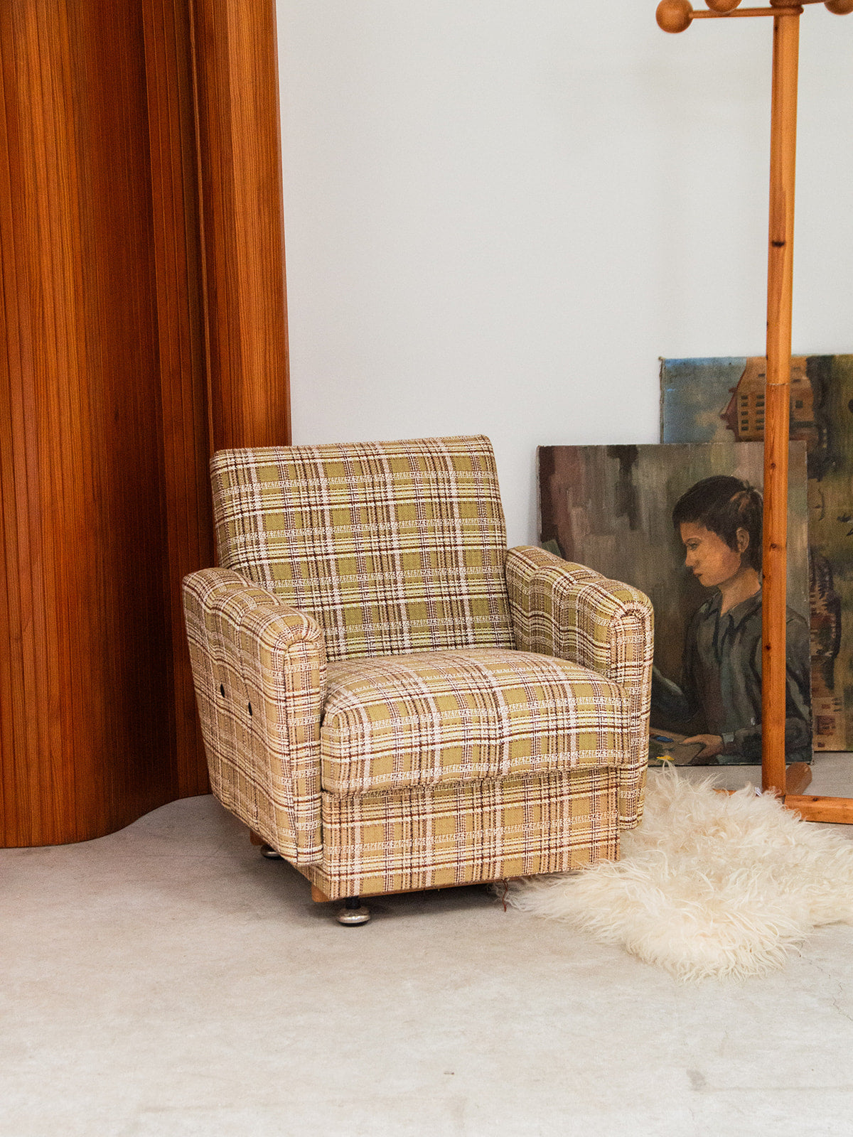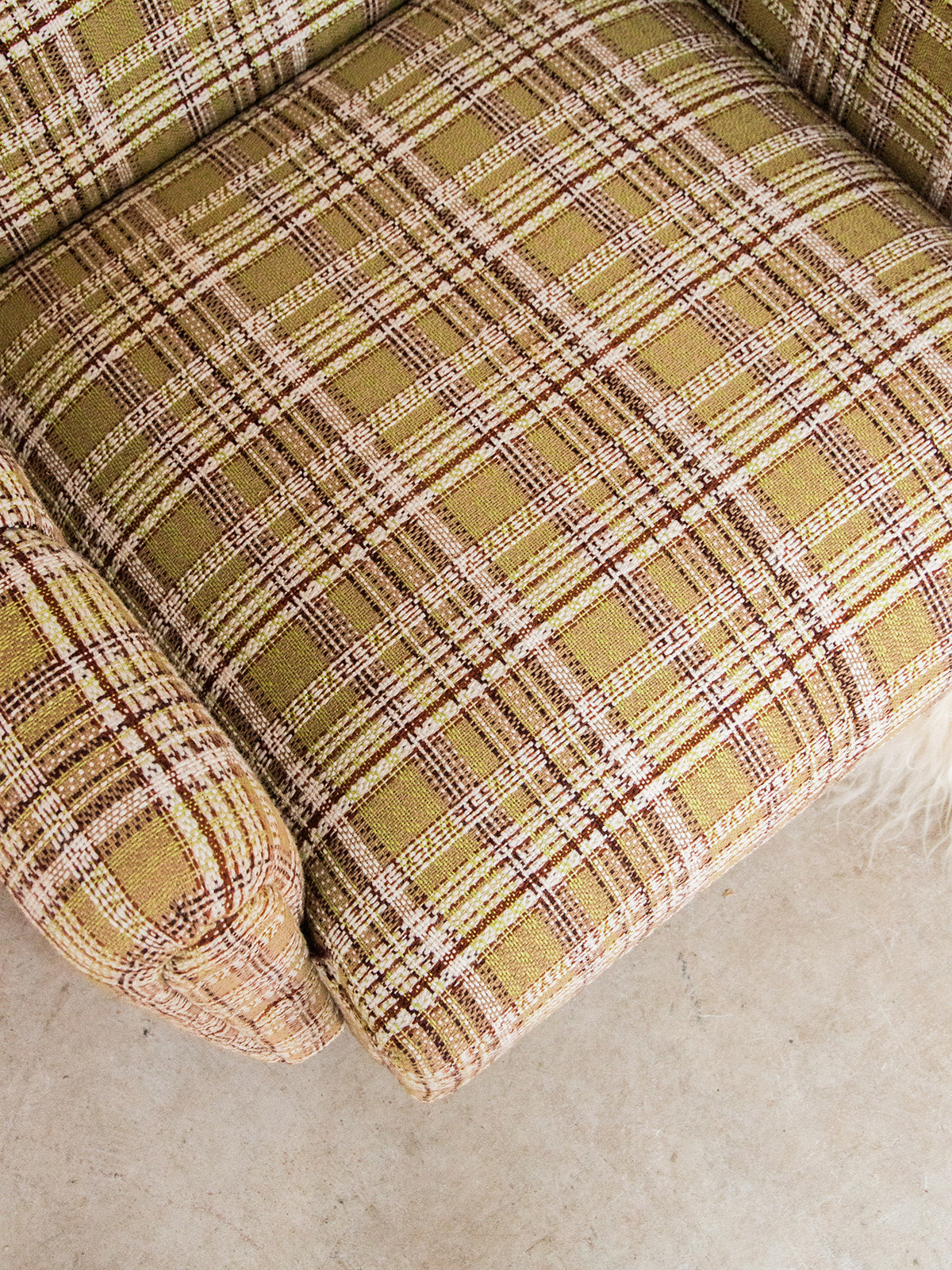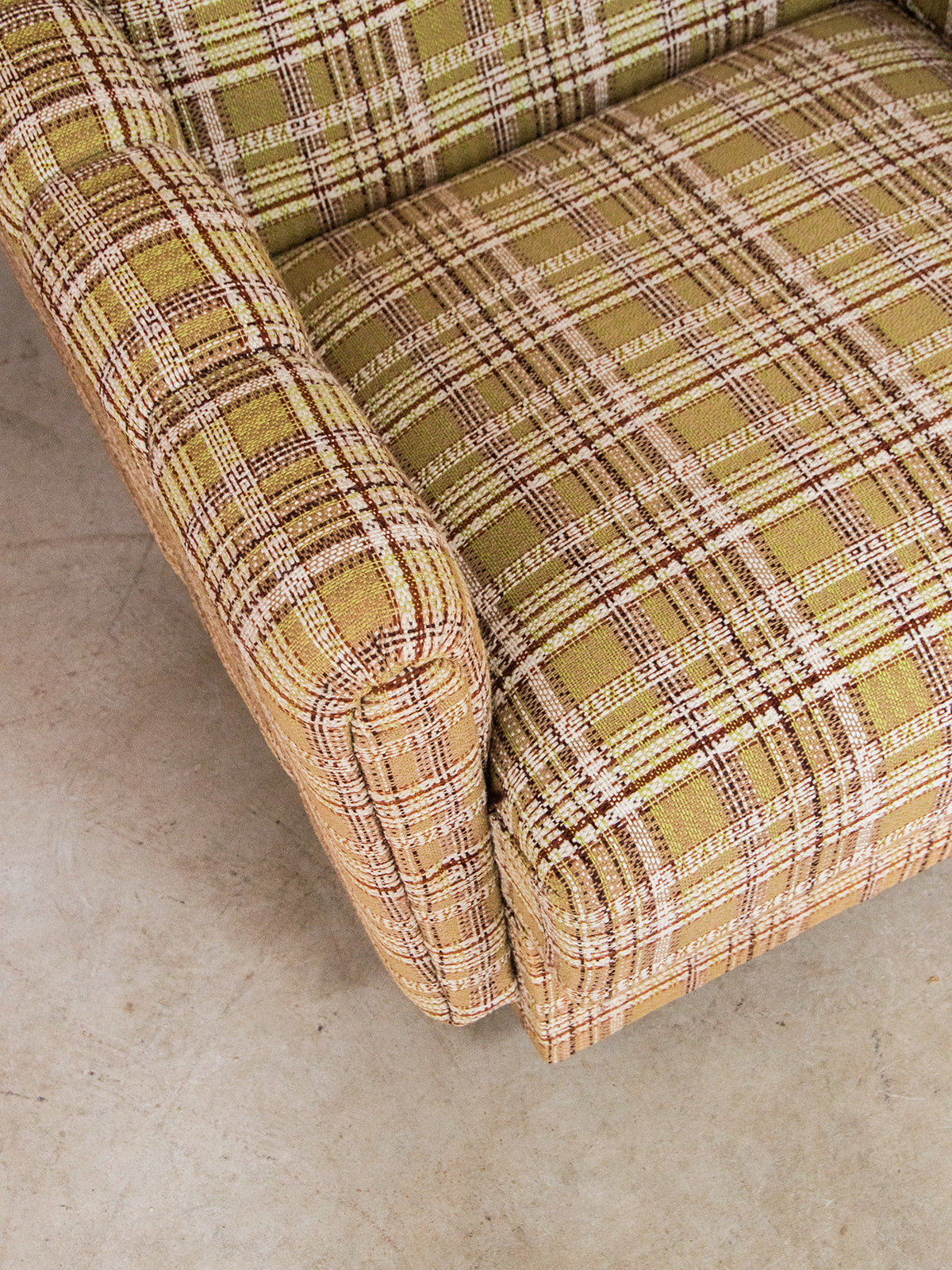 Apportez une touche rétro-chic à votre intérieur avec ce fauteuil en tissu vert à carreaux, sublimé par de délicats liserés vert et marron. Son assise molletonnée offre un confort enveloppant idéal pour un coin lecture ou un salon chaleureux. Les petits pieds ronds en métal apportent une note moderne et légère. Une pièce de caractère qui donnera du style à votre décoration sans compromis sur le confort ! Vendu à l'unité, ce fauteuil se décline en deux quantités.
