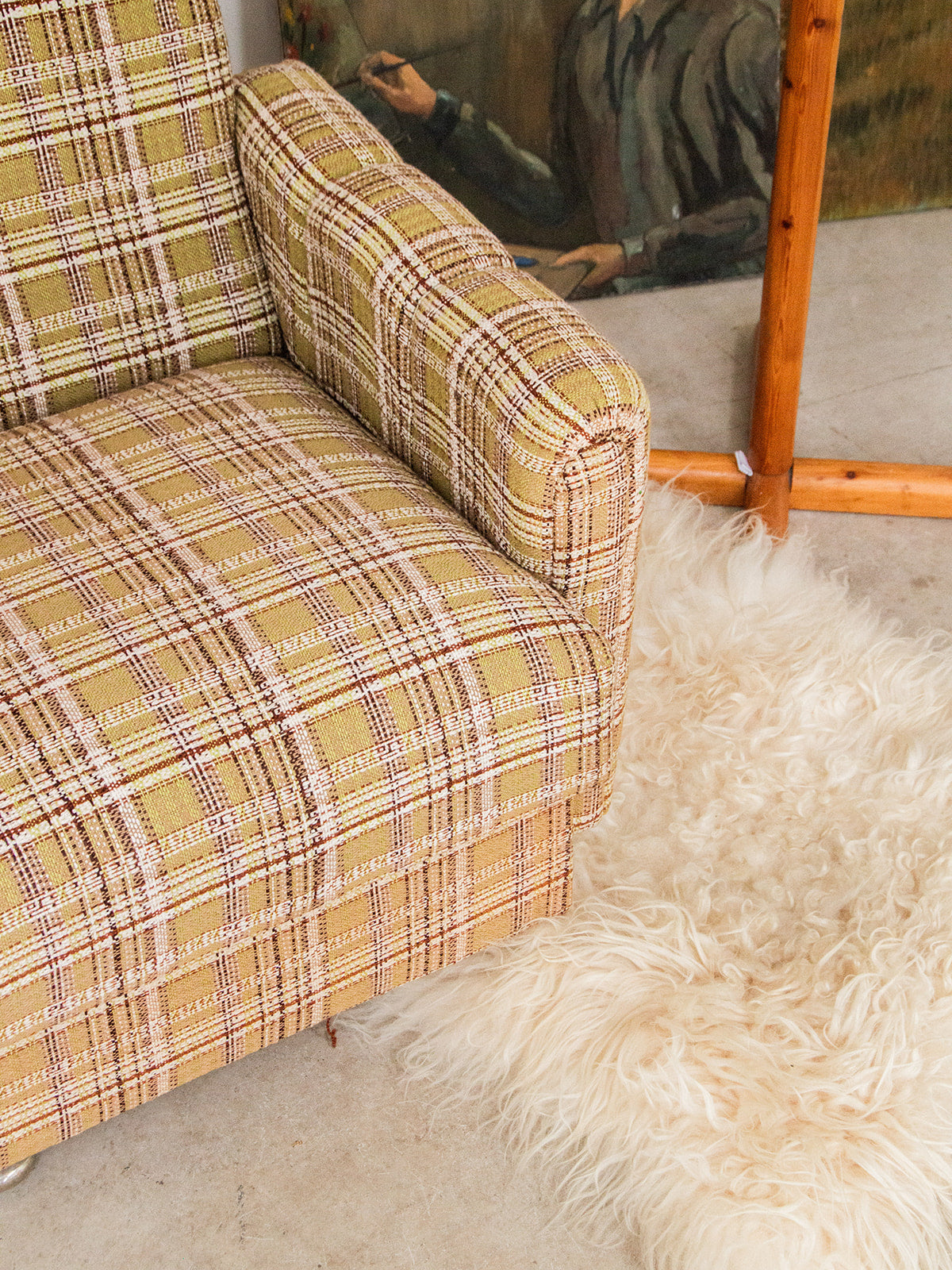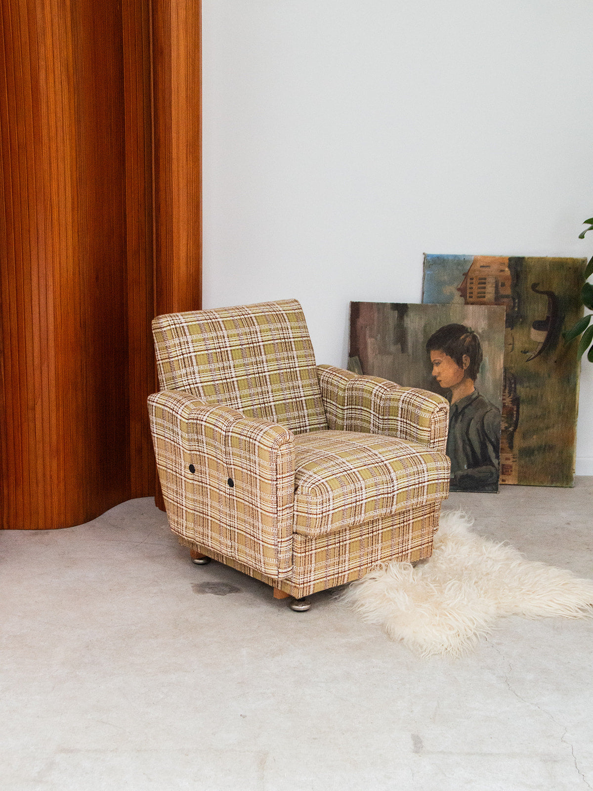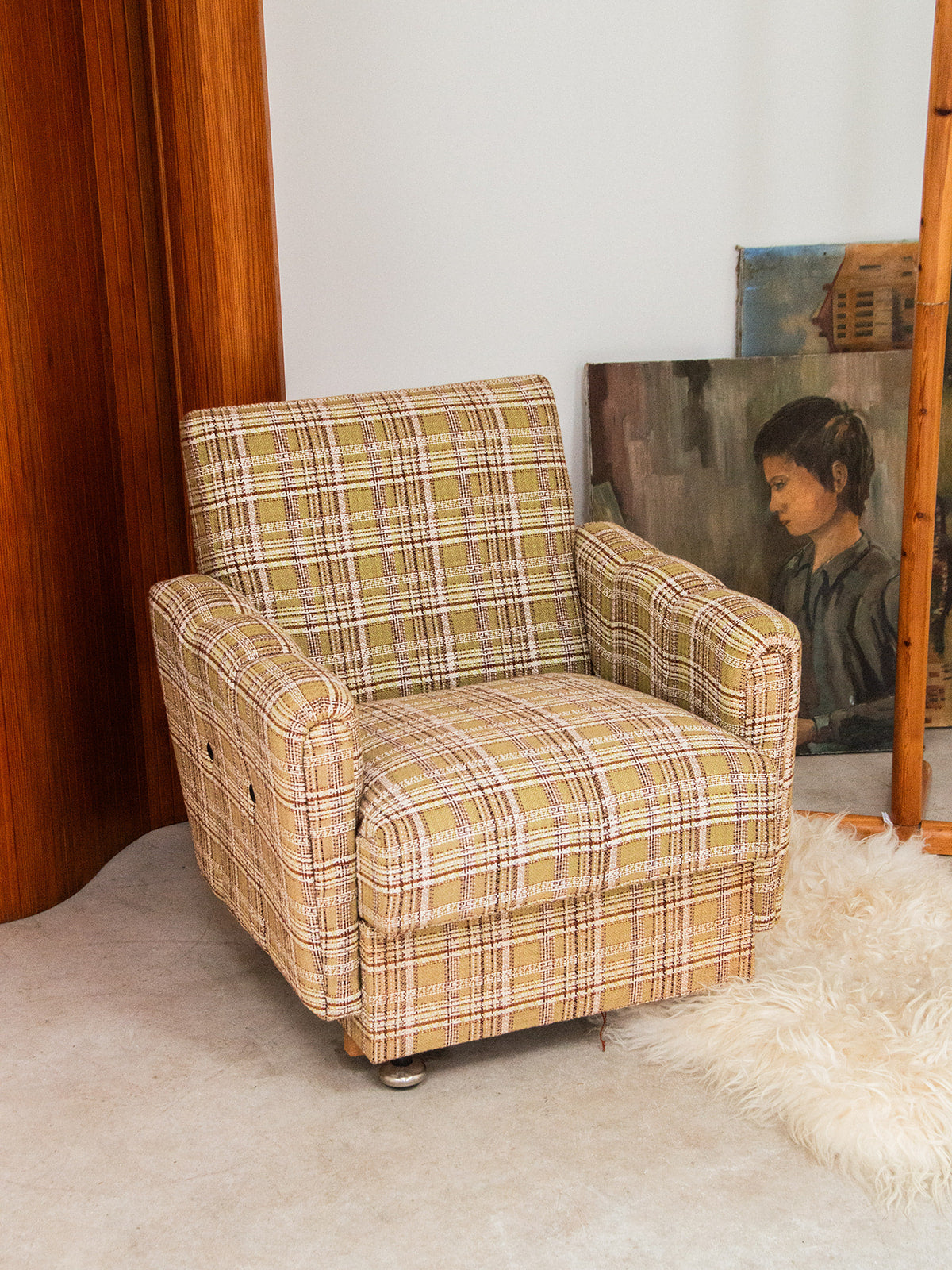 Apportez une touche rétro-chic à votre intérieur avec ce fauteuil en tissu vert à carreaux, sublimé par de délicats liserés vert et marron. Son assise molletonnée offre un confort enveloppant idéal pour un coin lecture ou un salon chaleureux. Les petits pieds ronds en métal apportent une note moderne et légère. Une pièce de caractère qui donnera du style à votre décoration sans compromis sur le confort ! Vendu à l'unité, ce fauteuil se décline en deux quantités.