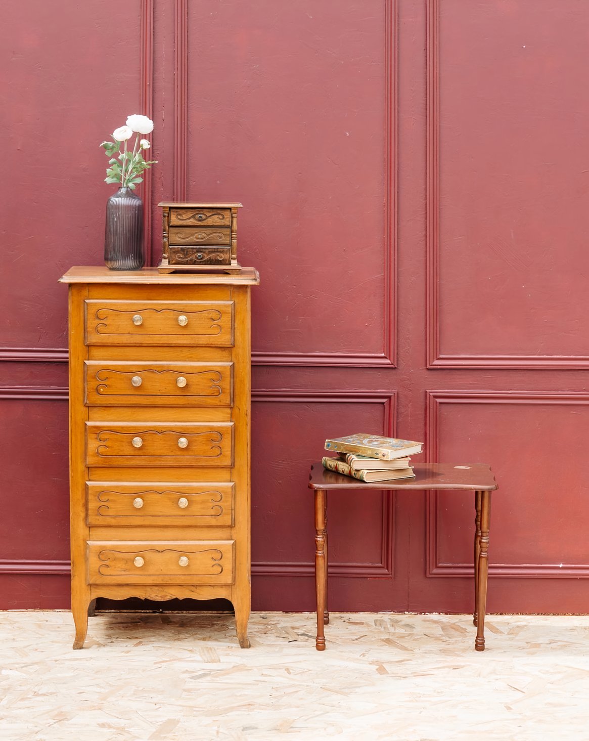 Ajoutez une touche d'élégance à votre intérieur avec cette table d'appoint rectangulaire en bois. Son plateau délicatement sculpté d'une vaguelette apporte une note artistique, tandis que sa tache sur le dessus lui confère un caractère authentique. Idéale pour sublimer votre salon ou votre espace de travail, cette table allie fonctionnalité et esthétisme. Un choix parfait pour les amateurs de design naturel !