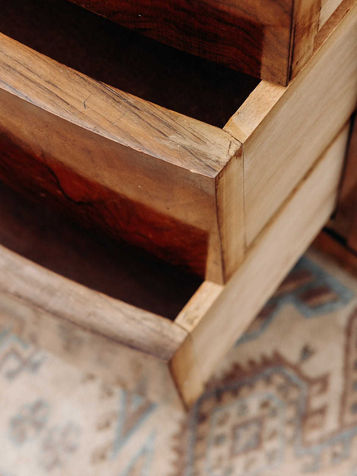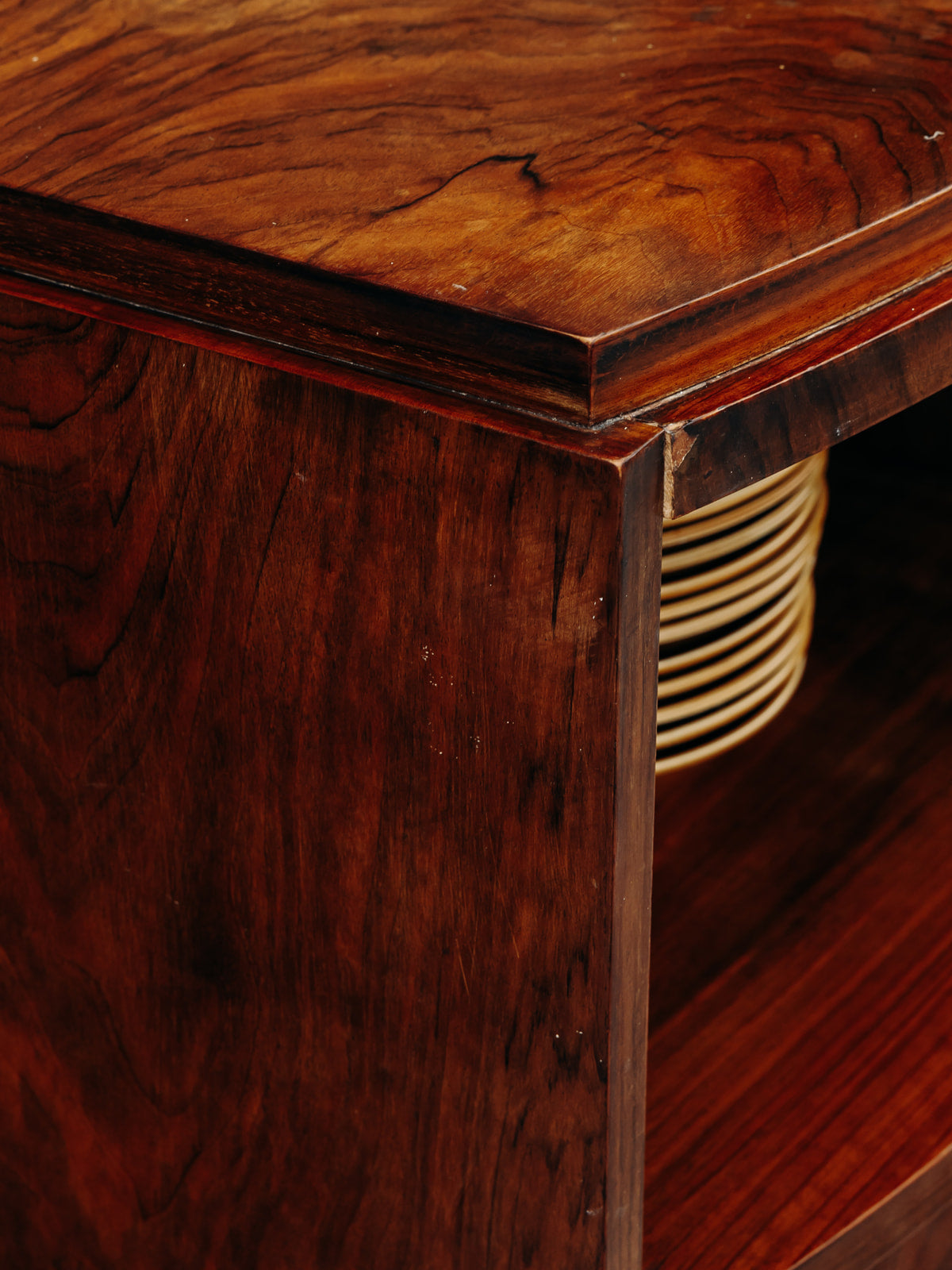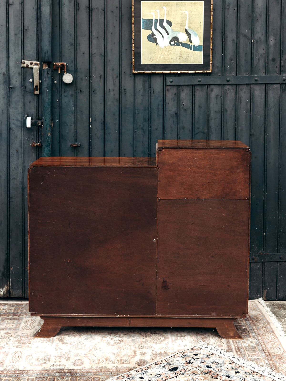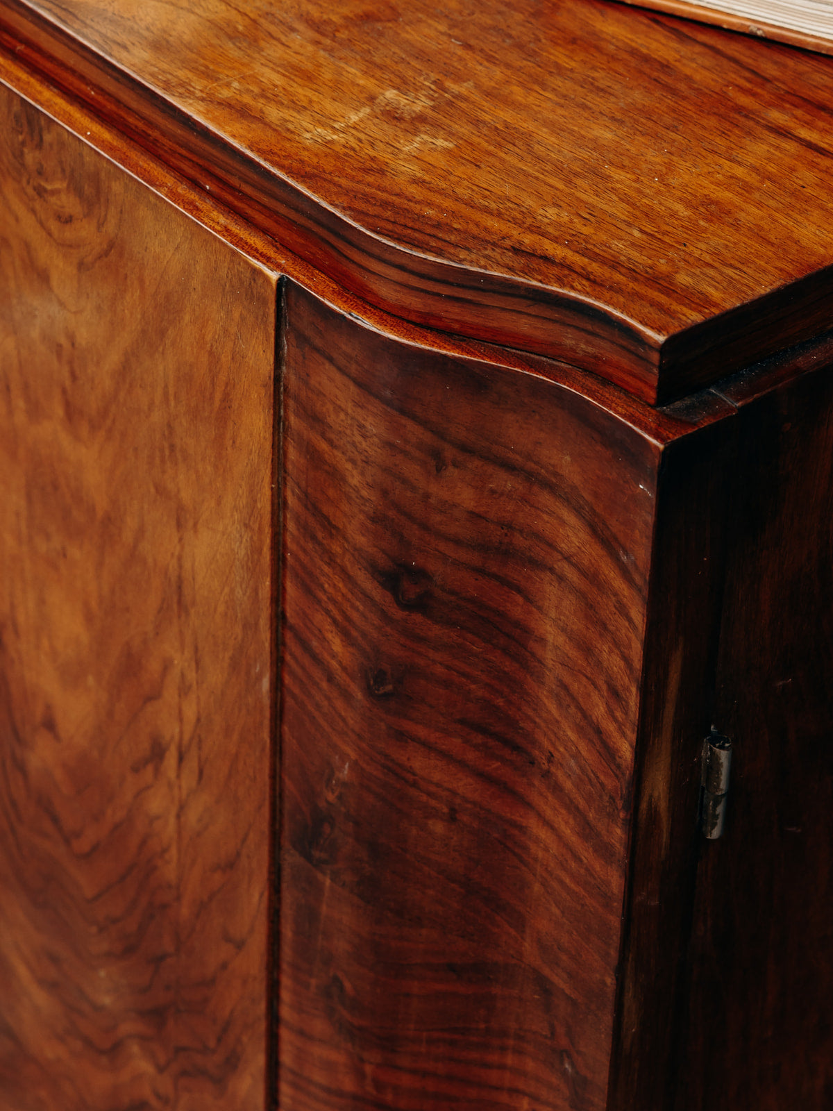 Buffet Art déco en bois, sublimé par un magnifique placage en ronce de noyer. Il offre trois tiroirs spacieux, une niche ouverte et un placard sécurisé par des clés, avec des étagères réglables sur crémaillères pour une grande modularité. Les poignées chromées apportent une touche moderne à ce meuble au design intemporel, alliant fonctionnalité et élégance pour sublimer votre intérieur.