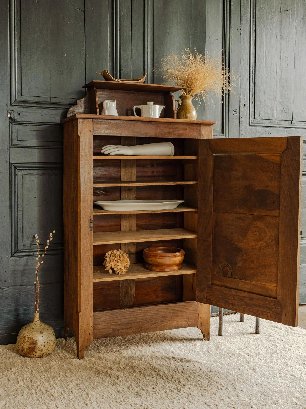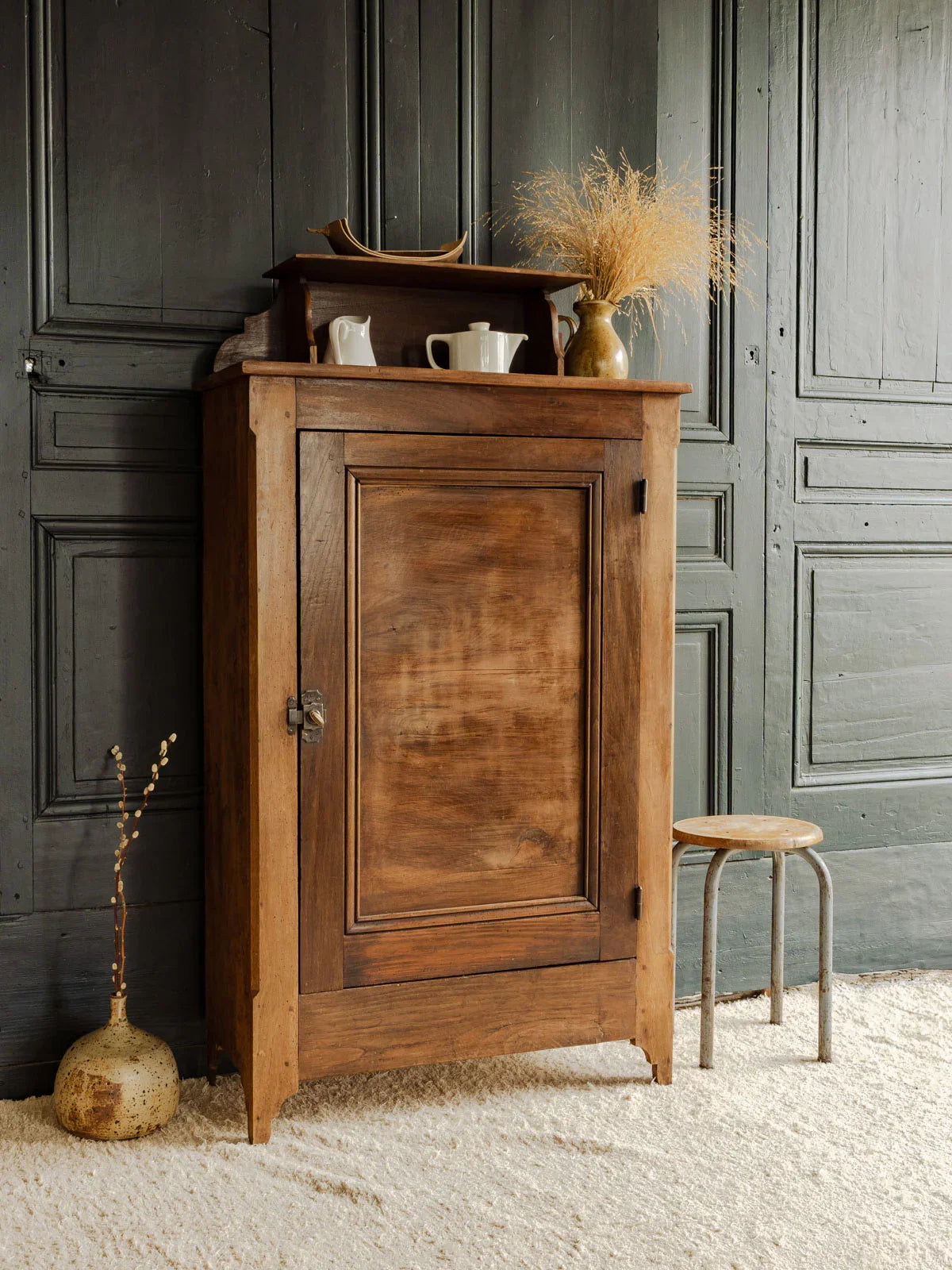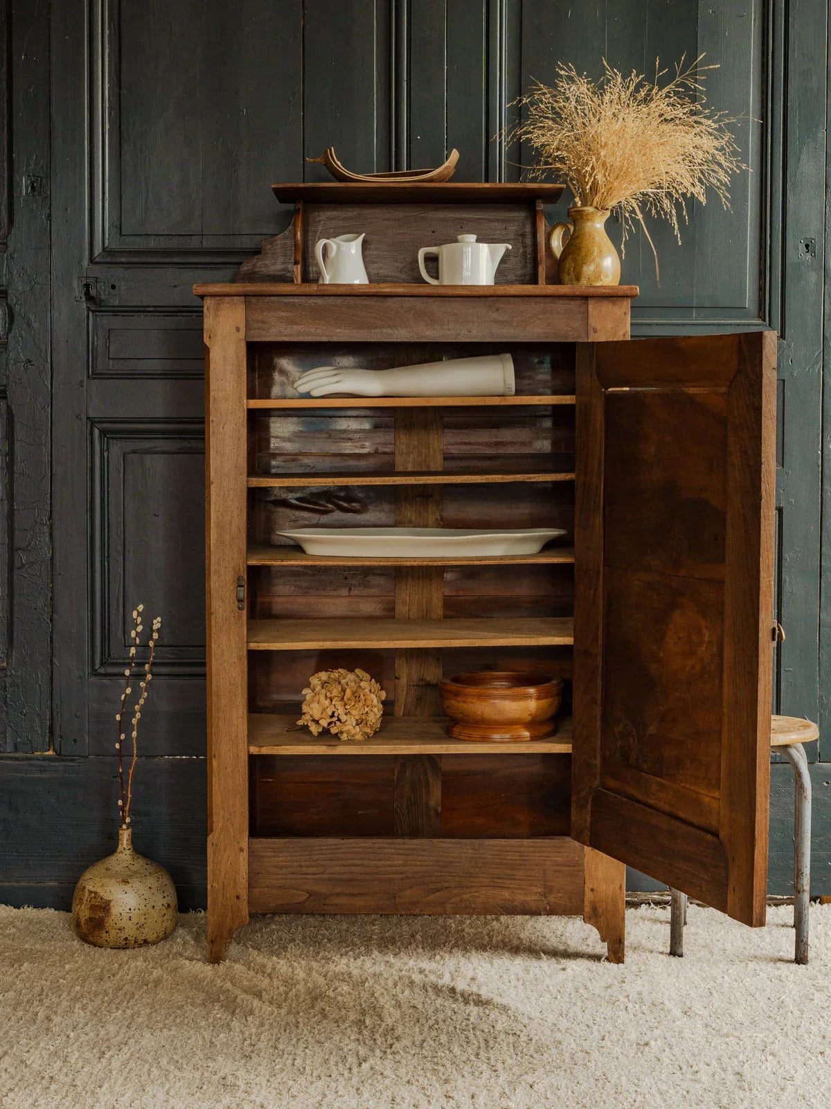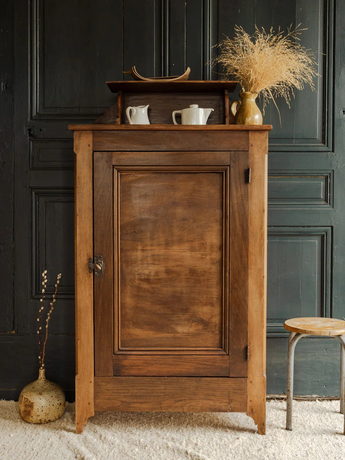 Découvrez ce magnifique buffet ancien en noyer, apportant une touche d'élégance à votre intérieur. Doté d'une porte avec un élégant verrou, il offre un espace de rangement fonctionnel et sécurisé. Ses cinq étagères, dont une partie sur le dessus, permettent d'exposer vos objets précieux ou vos livres avec style. Un meuble à la fois original et pratique, parfait pour ajouter du caractère à votre décoration !