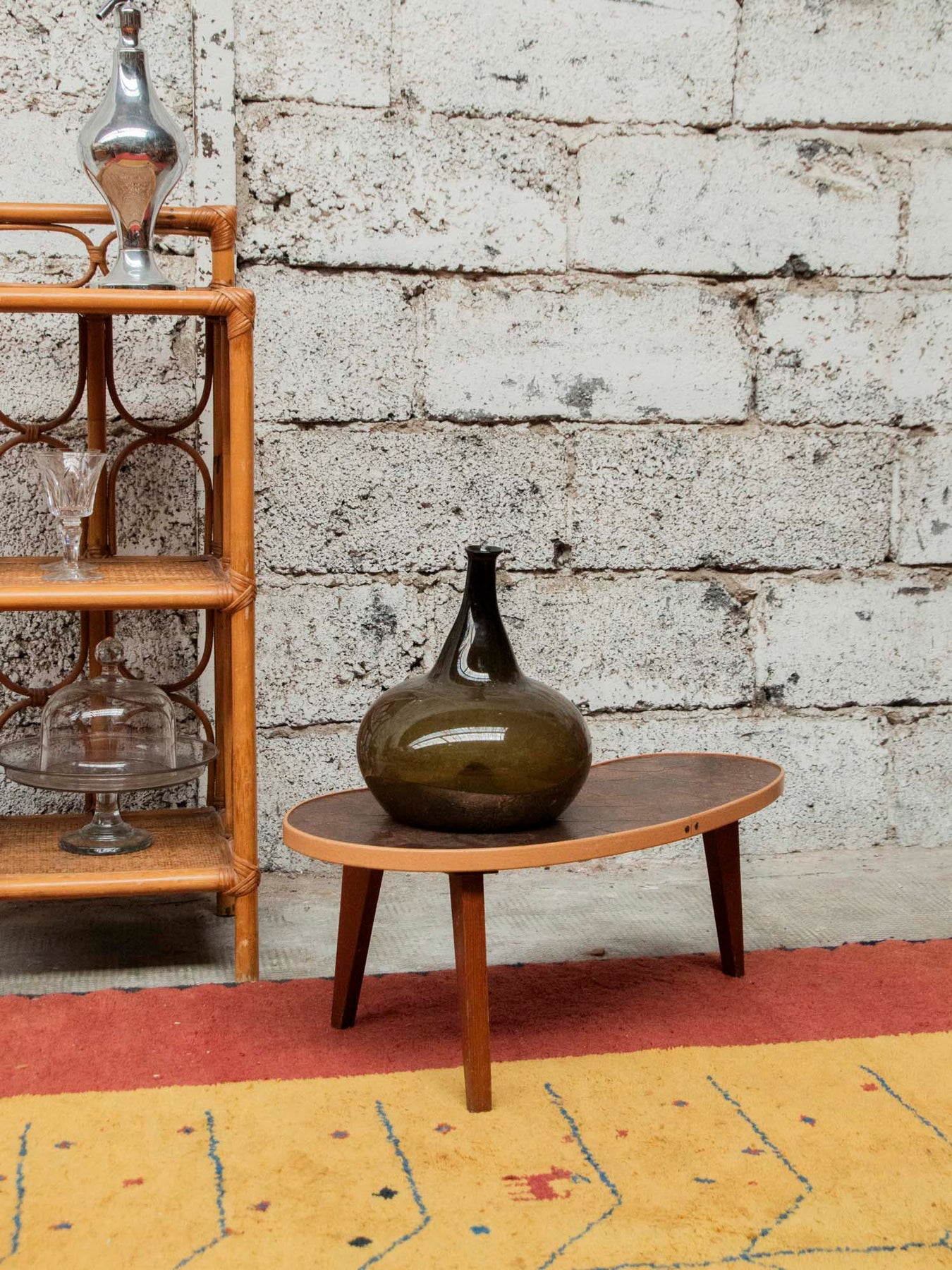 Ajoutez une touche de charme à votre intérieur avec notre table d'appoint / tabouret à 3 pieds compas. Son élégant plateau en forme de feuilles évoque la nature, tandis que ses pieds en bois assurent une stabilité optimale. Ce meuble polyvalent, idéal pour les petits espaces, peut servir de table d'appoint ou de siège supplémentaire. Son design raffiné s'intègre parfaitement dans tout style de décoration, du contemporain au vintage.
