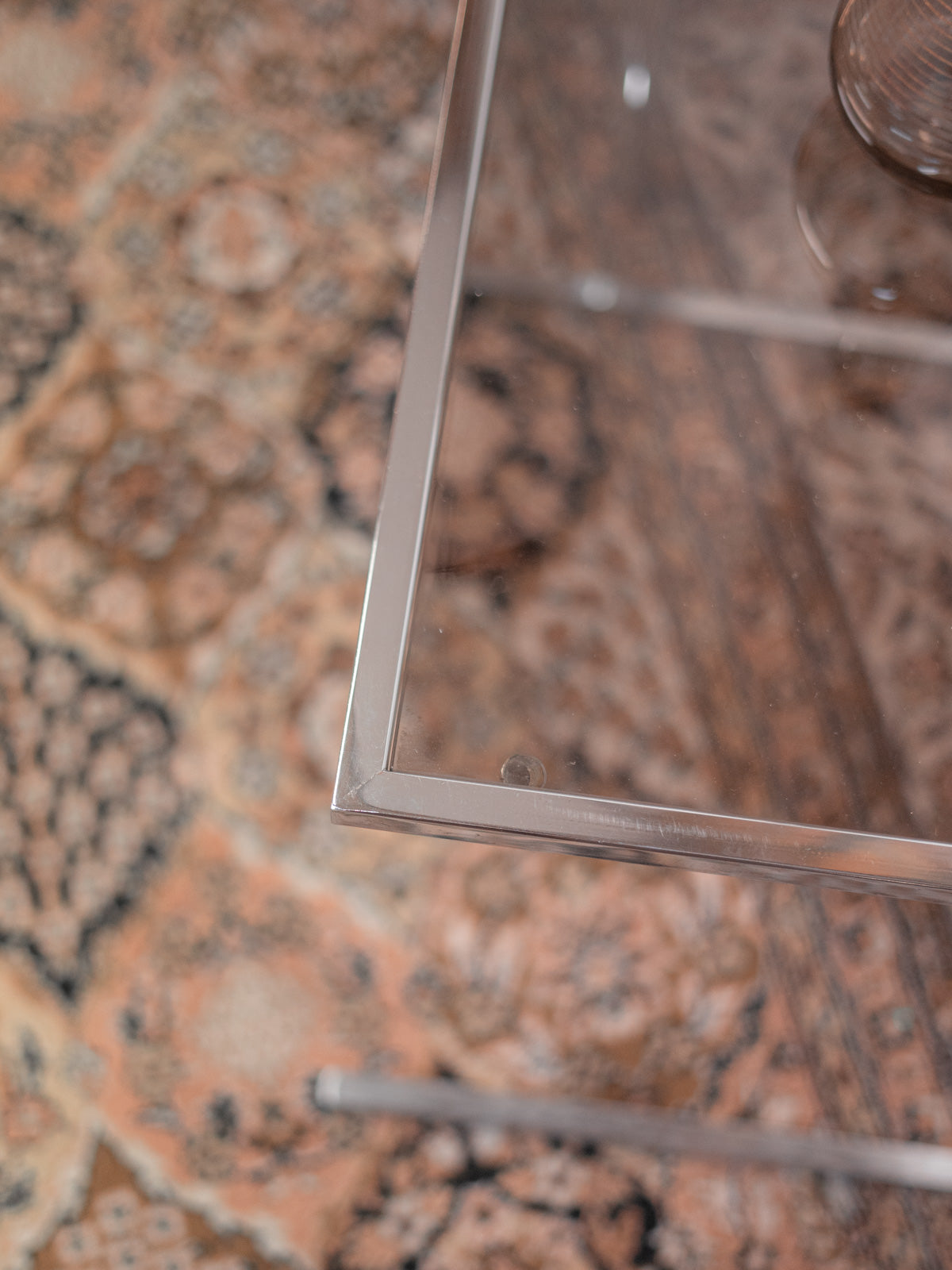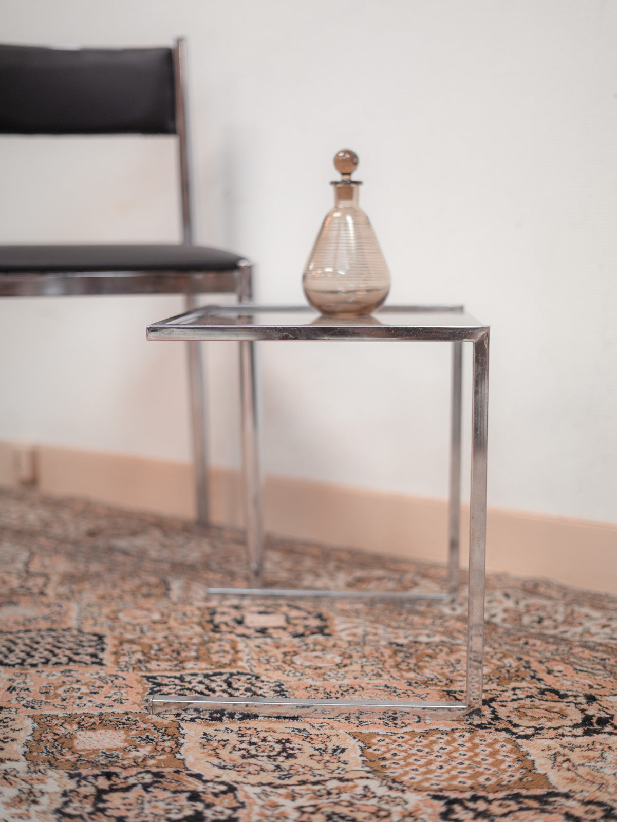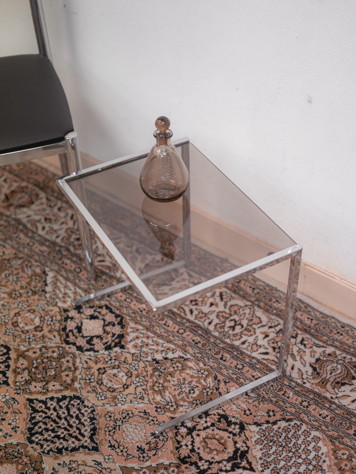 Découvrez notre élégante table d'appoint en verre fumé, parfait pour sublimer votre intérieur. Avec son piétement en métal chromé, il apporte une touche moderne et sophistiquée à votre décoration. Pratique et esthétique, ce meuble s'intégrera aisément dans tous les styles de salons, tout en offrant une surface idéale pour poser vos livres ou vos boissons. Ajoutez une note de chic et de fonctionnalité à votre espace de vie avec ce bout de canapé incontournable.