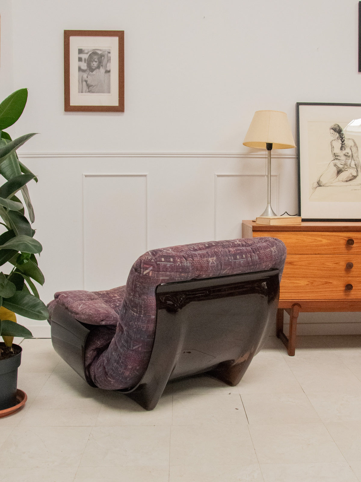 Découvrez le fauteuil Marsala vintage, une pièce emblématique des années 80 signée Michel Ducaroy pour Ligne Roset. Sa structure en plexiglass fumé thermoformé allie modernité et légèreté, tandis que le tissu au motif dans les tons prune apporte une touche d'audace à votre intérieur. Avec son assise confortable, ce fauteuil n'est pas seulement un objet design, mais également un invitation à la détente. Un incontournable pour les amateurs de mobilier rétro et de style contemporain.