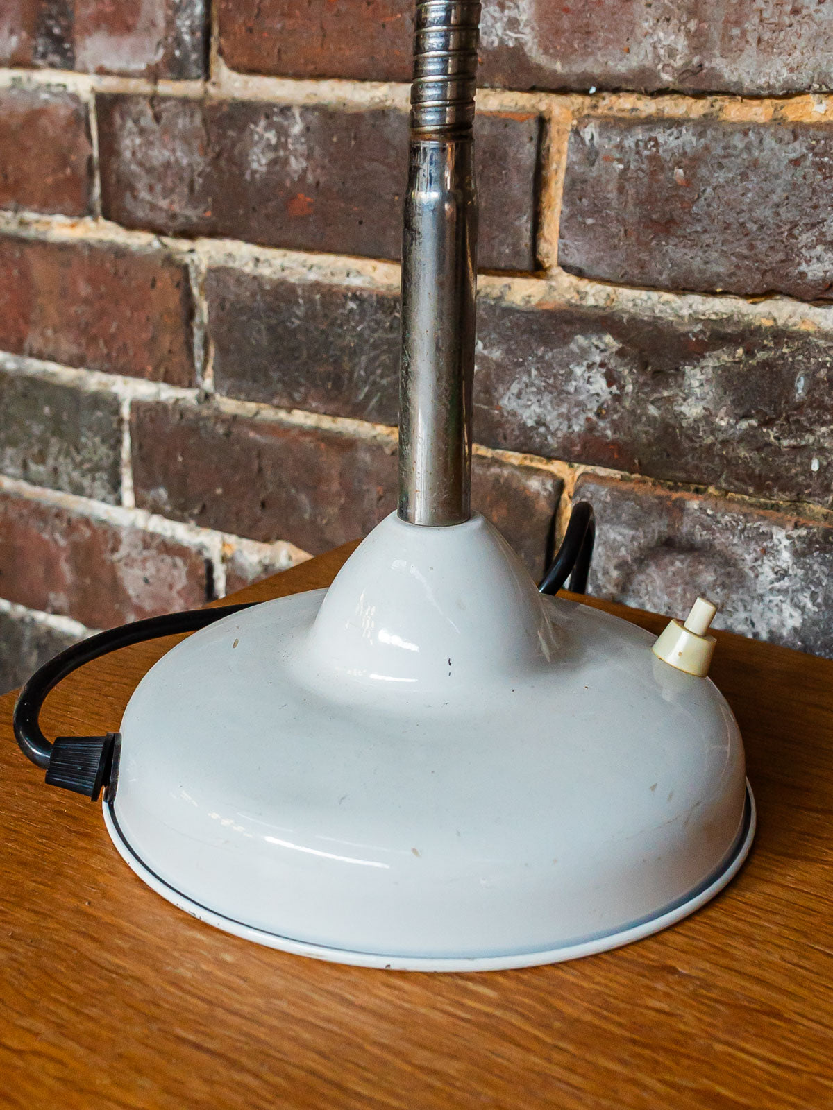 Découvrez notre lampe de bureau en métal blanc, inspirée des designs emblématiques des années 50 à 70. Cette pièce vintage allie élégance et fonctionnalité, avec son abat-jour orientable qui vous permet d'ajuster la lumière selon vos besoins. Son allure rétro apportera une touche de charme à votre espace de travail, tandis que sa finition en métal garantit une durabilité à toute épreuve. Un incontournable pour les amateurs de décoration d’intérieur au style authentique !