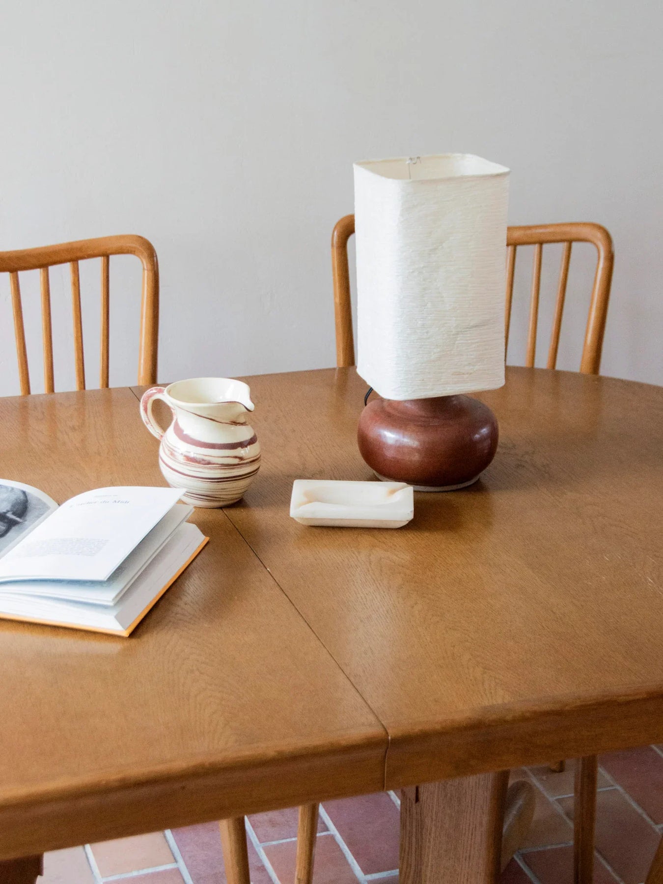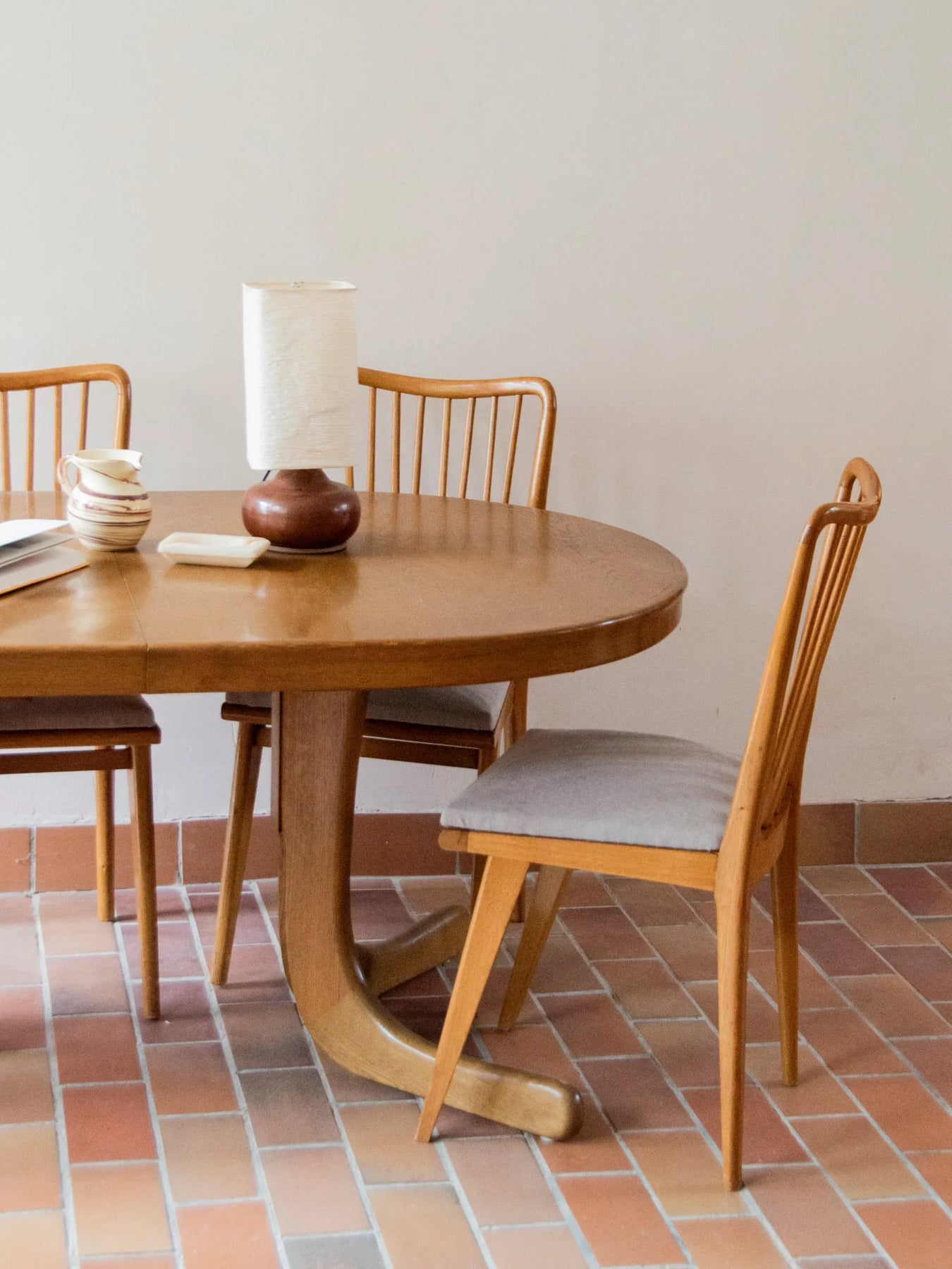 Découvrez cette superbe table à manger ovale en placage chêne, emblématique des années 80. Son design intemporel et chaleureux, combiné à un plateau aux courbes douces, en fait un élément central de votre salle à manger. Reposant sur un piètement sculptural en forme de patins, elle allie stabilité et élégance. Bien qu'elle n'ait plus de rallonge, elle invite confortablement 6 à 8 convives, s’intégrant harmonieusement dans tous les styles de décoration, du contemporain à l’authentique. Sa patine naturelle et son plateau en très bon état, avec quelques infimes marques d’usage, témoignent de son histoire tout en conservant un charme inaltéré.