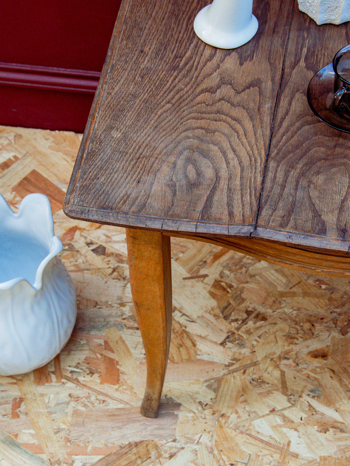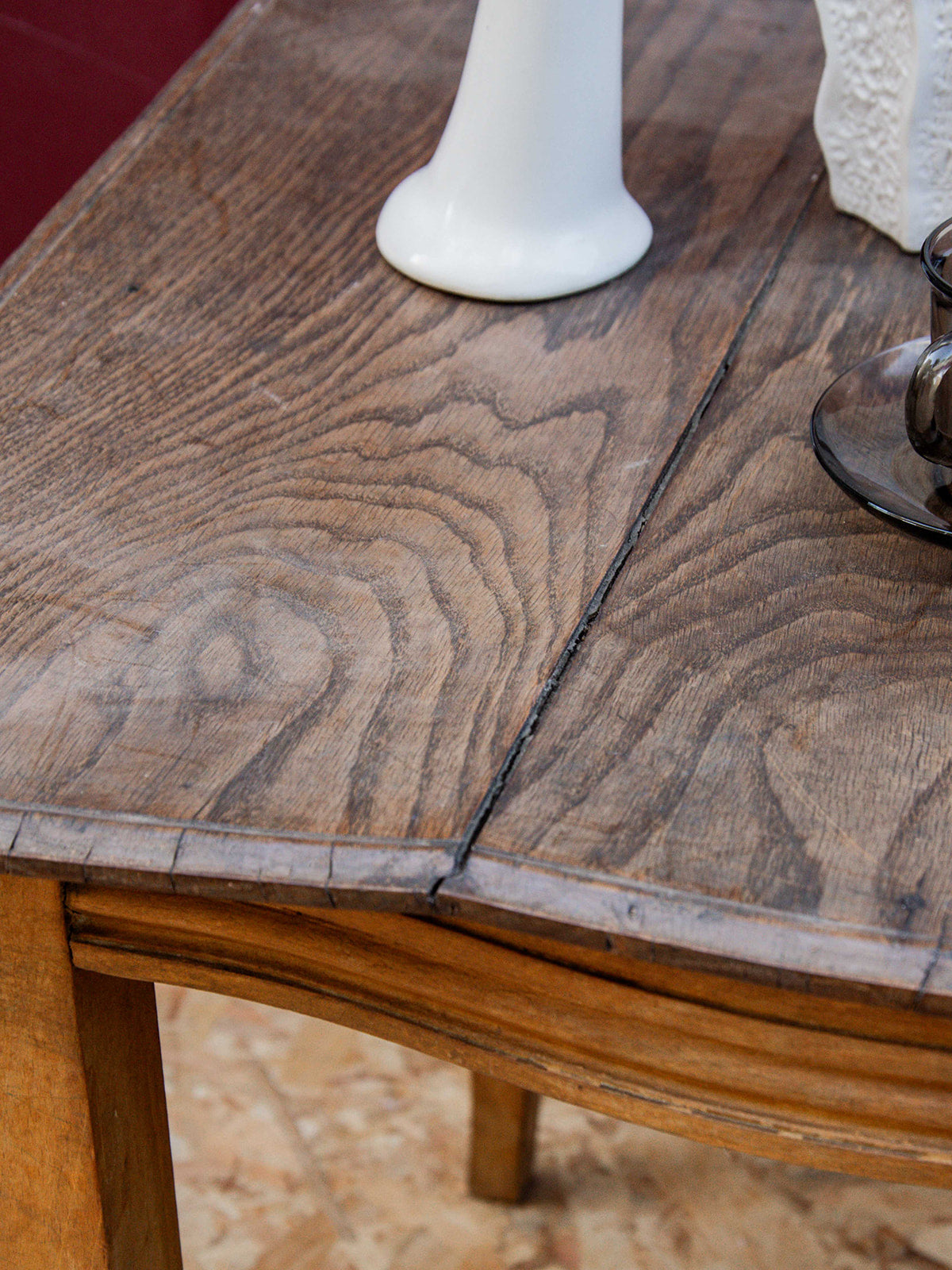 Cette table basse en bois carré a tout pour plaire : ses coins joliment arrondis, ses pieds légèrement courbés et ses détails travaillés lui donnent une vraie présence dans un salon. Le plateau présente un léger gondolage, témoin de son histoire et de son authenticité. On l’adopte pour son charme naturel et sa capacité à réchauffer instantanément une pièce de vie.