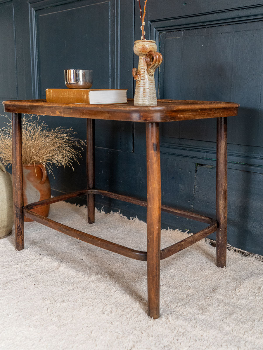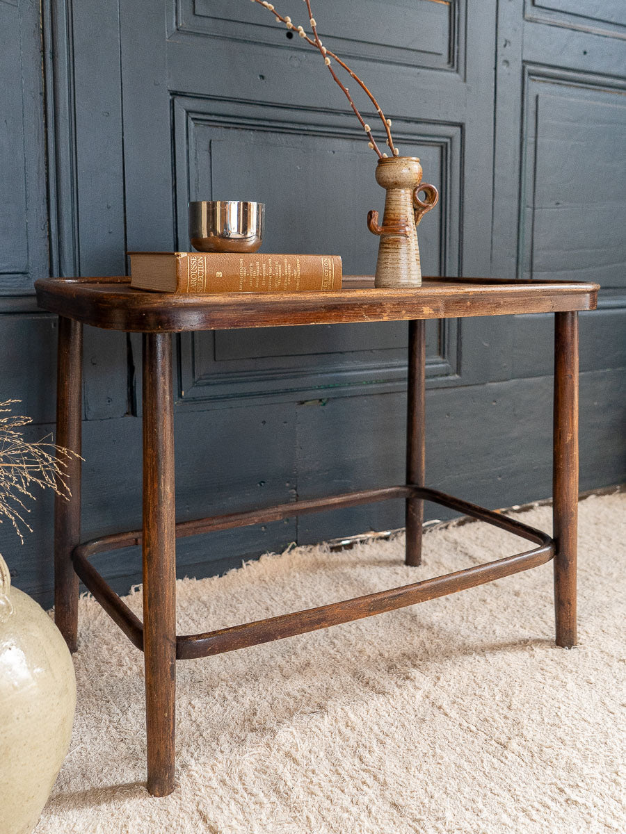 Apportez une touche d'élégance à votre salon avec notre table d'appoint esprit Thonet. Ce meuble au design intemporel s'intègre facilement dans tout type d'intérieur. Fabriquée avec soin, cette table allie esthétisme et fonctionnalité, tout en offrant un espace pratique pour poser vos livres ou vos boissons.