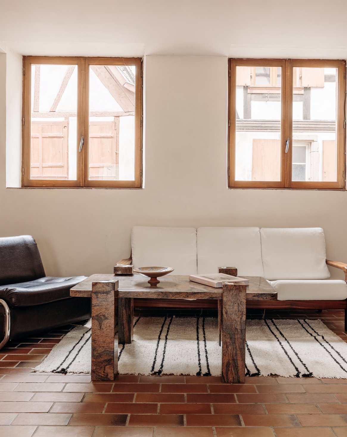 Alerte pépite ! Apportez une touche d'élégance contemporaine à votre intérieur avec cette table basse en granite rouge. Son plateau généreux et ses pieds géométriques créent un design graphique audacieux, tandis que la texture marbrée du granite ajoute une note vintage et chic. En superbe état, elle est idéale pour toute décoration moderne. Poids environ 100 kg.