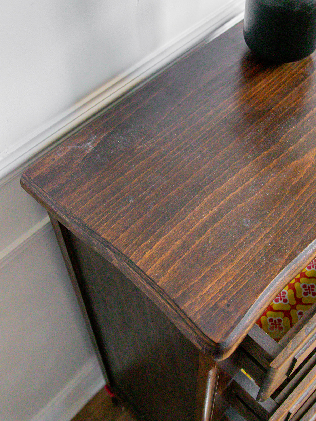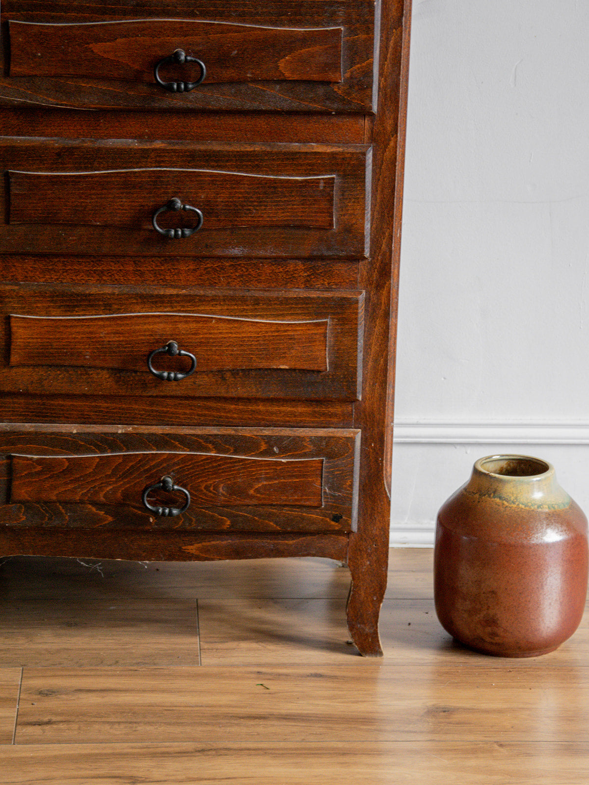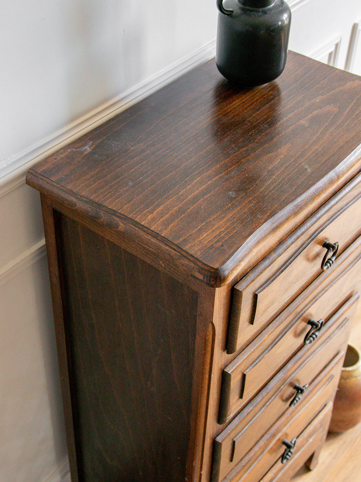 Apportez du charme à votre intérieur avec ce meuble de rangement en bois. Il est équipé de 5 tiroirs pratiques pour organiser vos effets personnels. Sa patine et ses marques du temps lui donnent une belle authenticité. Un meuble fonctionnel et plein de caractère pour toutes les pièces. Idéal pour ajouter une touche vintage à votre décoration.