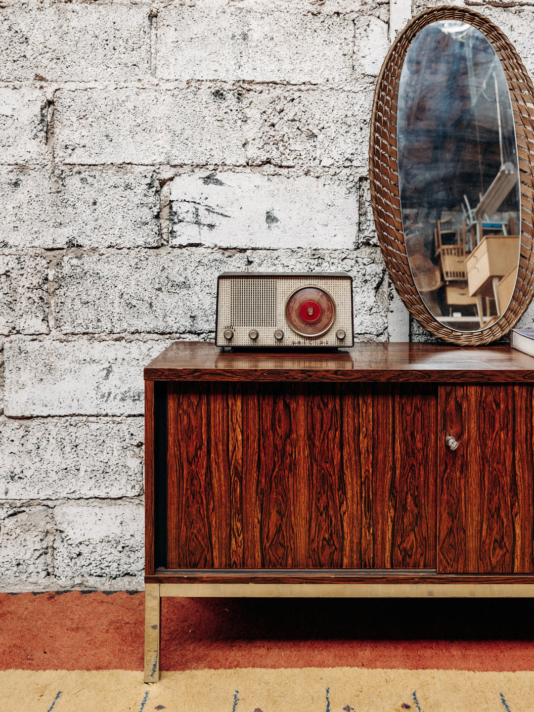 Discover this refined sideboard, combining the elegance of wood with the robustness of metal. Its beautiful rosewood-effect Formica adds a warm touch to your home. Equipped with a sliding door with a key to secure your belongings, it also features an ideal shelf to optimize your space with a height of 21 cm. This timeless piece of furniture will blend harmoniously into your decor while offering functionality and style.