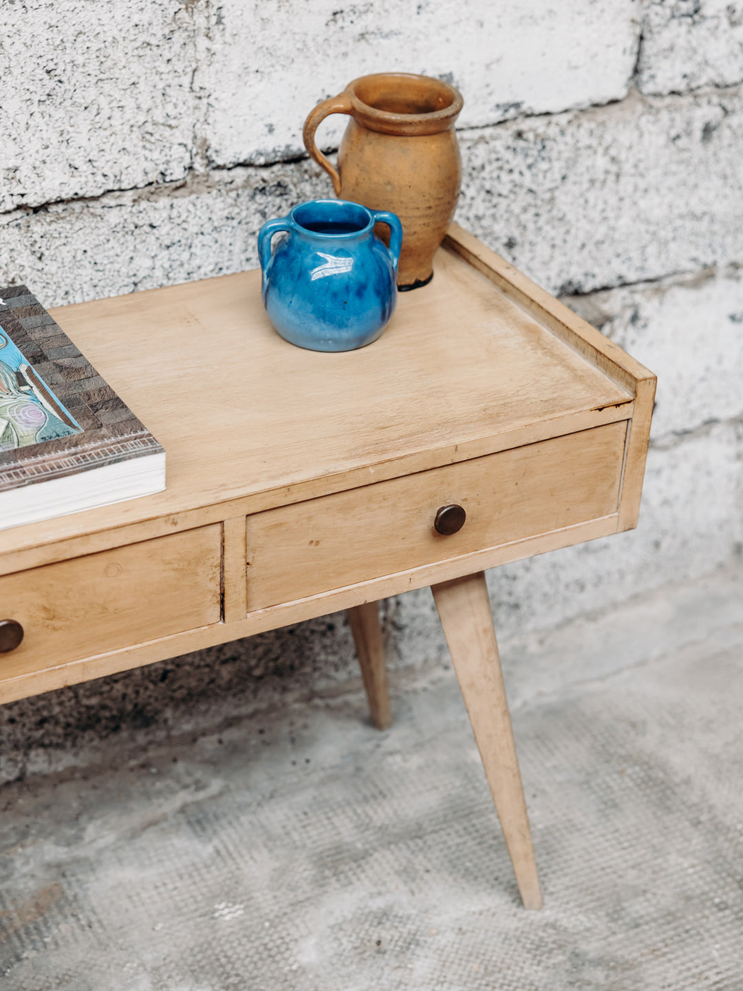 Bring a touch of Scandinavian elegance to your home with this tall, light wood side table. Featuring tall compass legs, it features two spacious drawers adorned with small, round metal handles, combining aesthetics and functionality. The subtle edges add a delicate touch while ensuring practical everyday use. Ideal for complementing your living room or bedroom, this piece combines charm and practicality with style.