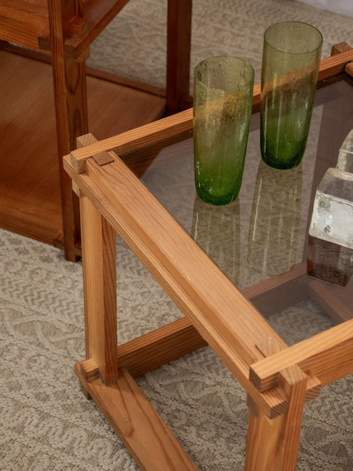 Add a touch of elegance to your home with this square side table featuring a lightly smoked glass top. Its wooden frame, designed to create a nested appearance, combines strength and lightness, making this table a practical and aesthetically pleasing piece of decor. Ideal for enhancing any space, it fits perfectly into a living room or bedroom, while adding a modern and refined touch.