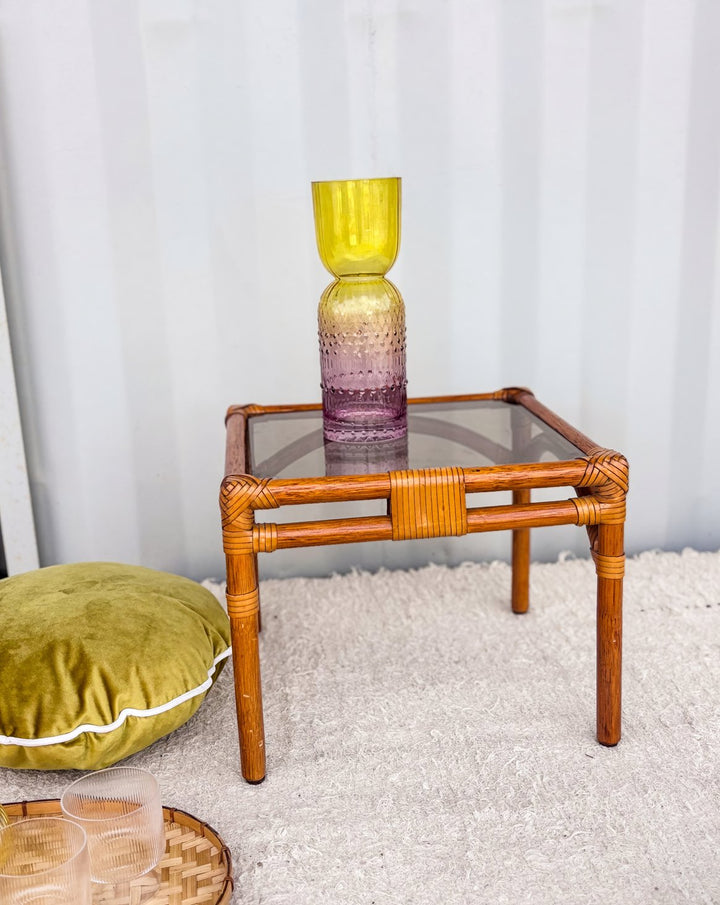 Discover our vintage-style rattan coffee table, a real asset to your home. Its smoked glass top adds a touch of elegance while being easy to clean. The delicate lines of the rattan, combined with the modernity of the glass, make this a warm and contemporary piece, ideal for enhancing your living room. Bring a retro touch to your decor with this unique piece that invites conviviality.