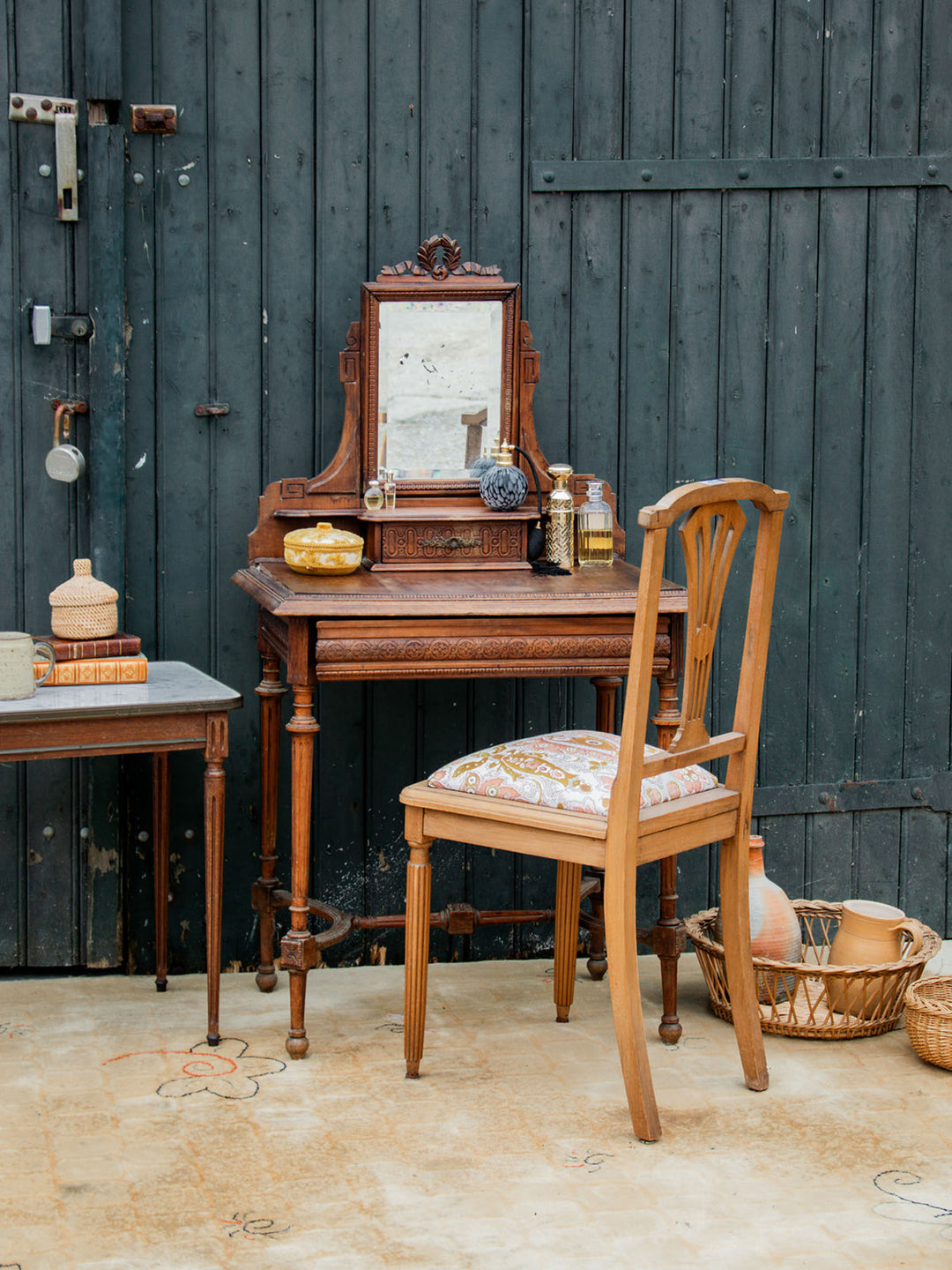 The term "dressing table" appeared at the beginning of the 20th century, while the piece of furniture has existed since Antiquity. Composed of a shelf, one or more mirrors and numerous drawers, the dressing table is a storage piece, but above all a place of preparation where one applies makeup, perfumes and does one's hair. If originally, this furniture corresponds to both men and women, it very quickly became the embodiment of feminine mystery. The dressing table can indeed be equipped with secret hiding places, in order to receive intimate correspondence. Today, the dressing table is back in the spotlight and works very well in all styles of interiors!