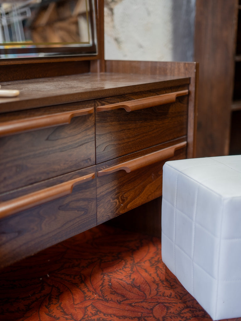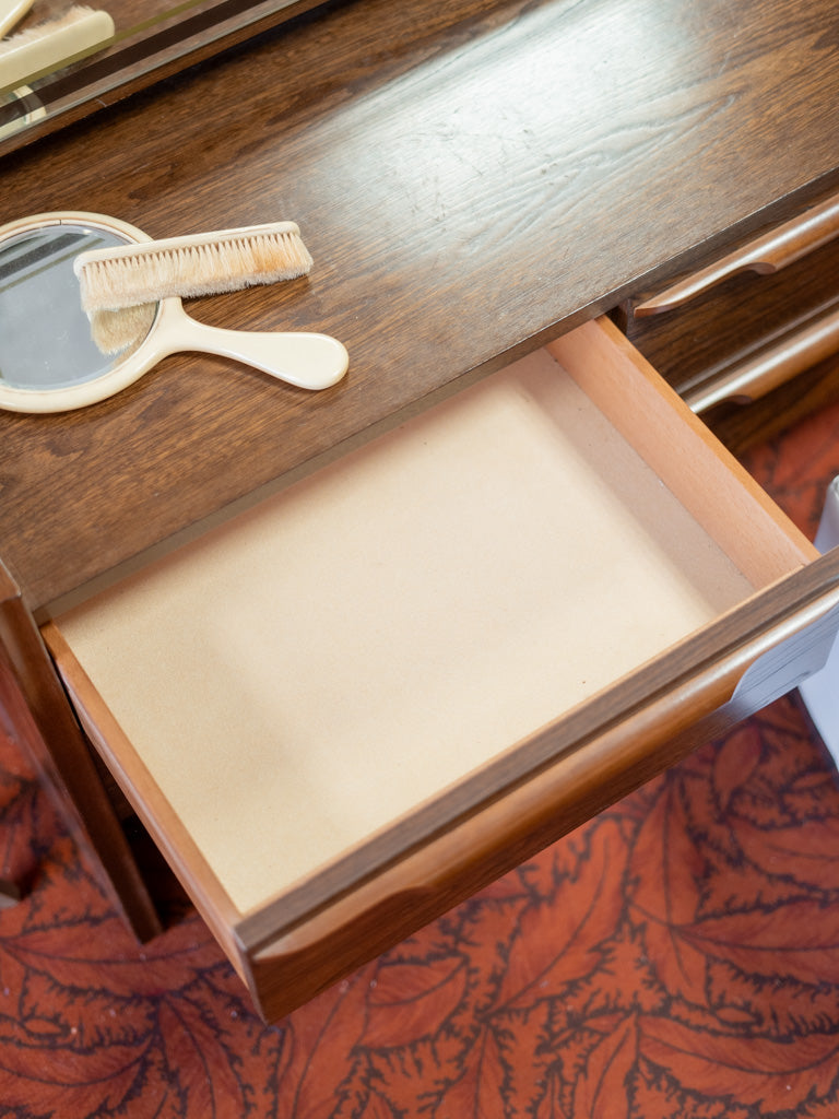 The term "dressing table" appeared at the beginning of the 20th century, while the piece of furniture has existed since Antiquity. Composed of a shelf, one or more mirrors and numerous drawers, the dressing table is a storage piece, but above all a place of preparation where one applies makeup, perfumes and does one's hair. If originally, this furniture corresponds to both men and women, it very quickly became the embodiment of feminine mystery. The dressing table can indeed be equipped with secret hiding places, in order to receive intimate correspondence. Today, the dressing table is back in the spotlight and works very well in all styles of interiors!