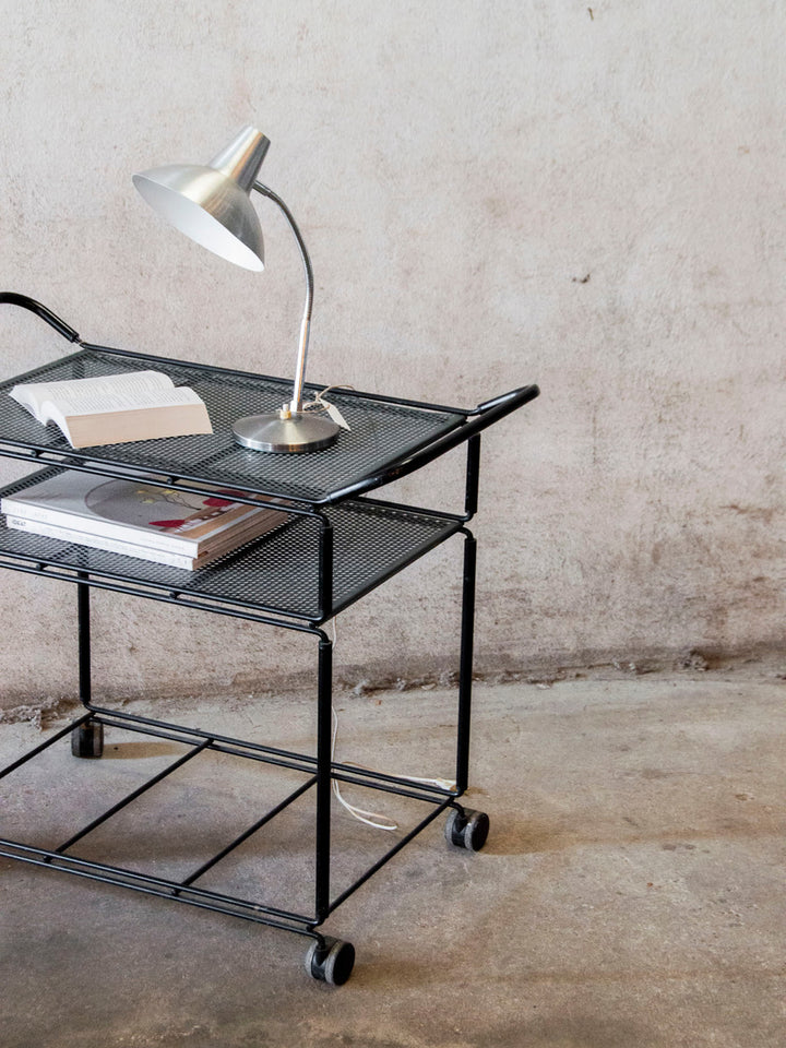 Discover the black metal trolley designed by Niels Gammelgaard for Ikea, a piece of furniture that's both practical and elegant. Featuring wide handles for easy handling, this trolley features removable shelves, offering flexible use tailored to your needs. Its modern finish and sleek design blend seamlessly into any interior, making this trolley an essential accessory for storing and displaying your essentials.