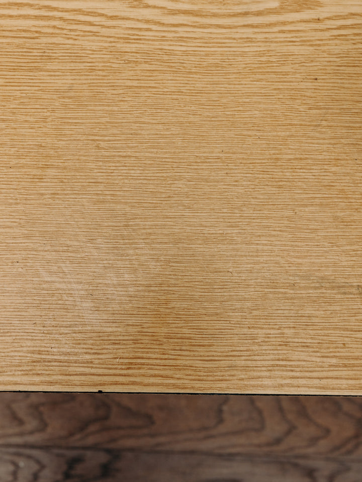 Add a retro touch to your home with this vintage school desk. The wood veneer and metal legs give it a timeless charm, while the built-in compartment provides convenient storage. Note that the edge of the tabletop shows some signs of wear, visible in the photos, which reinforces its authentic character. A piece of furniture that is both functional and stylish for a bedroom or office.