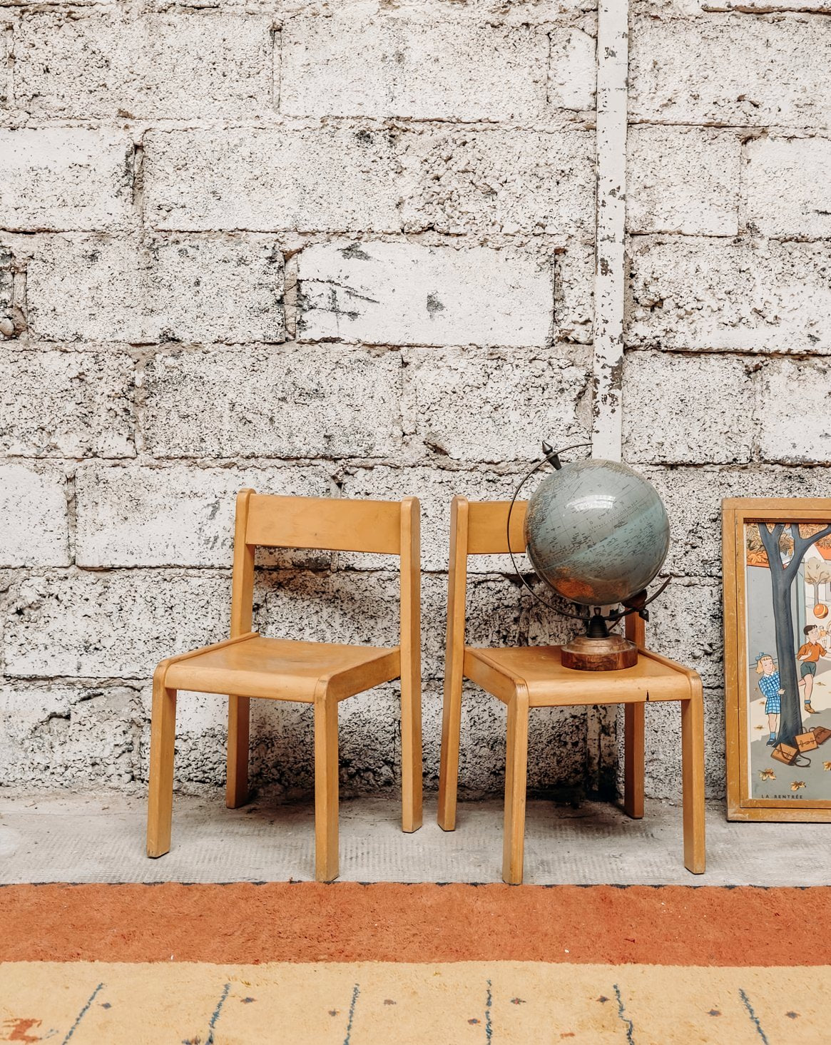 Discover this charming little light wood chair, perfect for adding a retro touch to your child's space. Its sturdy structure ensures comfort and stability, making it ideal for everyday activities. Lightweight and easy to move, it's equally at home in a bedroom or playroom. Its vintage design creates a soft and warm ambiance. Bring a touch of authenticity to your child's space with this seat full of character. Sold individually, 2 available.
