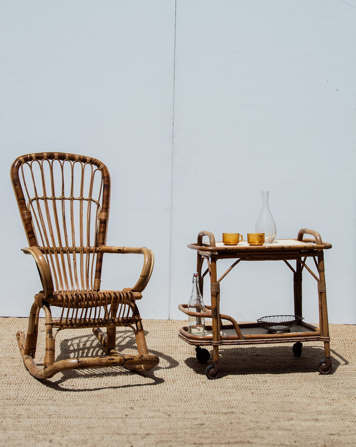 Discover this speckled rattan rocking chair, a boldly designed piece that combines aesthetics and comfort. Its large, sturdy frame ensures remarkable strength, while the speckled pattern adds a unique touch to your home. Perfect for relaxing in style, this rocking chair is a must-have for all lovers of unique furniture. Bring a touch of elegance and warmth to your space with this timeless armchair.