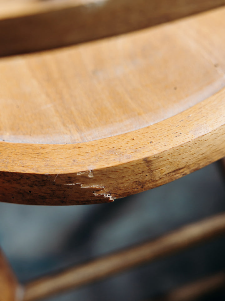 Honey-stained wooden bistro chair, in the Baumann style! Its wood, weathered by time, gives it a unique charm, while remaining stable and robust. Perfect for adding a vintage touch to your interior, it fits elegantly into a dining room or coffee corner. Sold in pairs, available in 6 copies.
