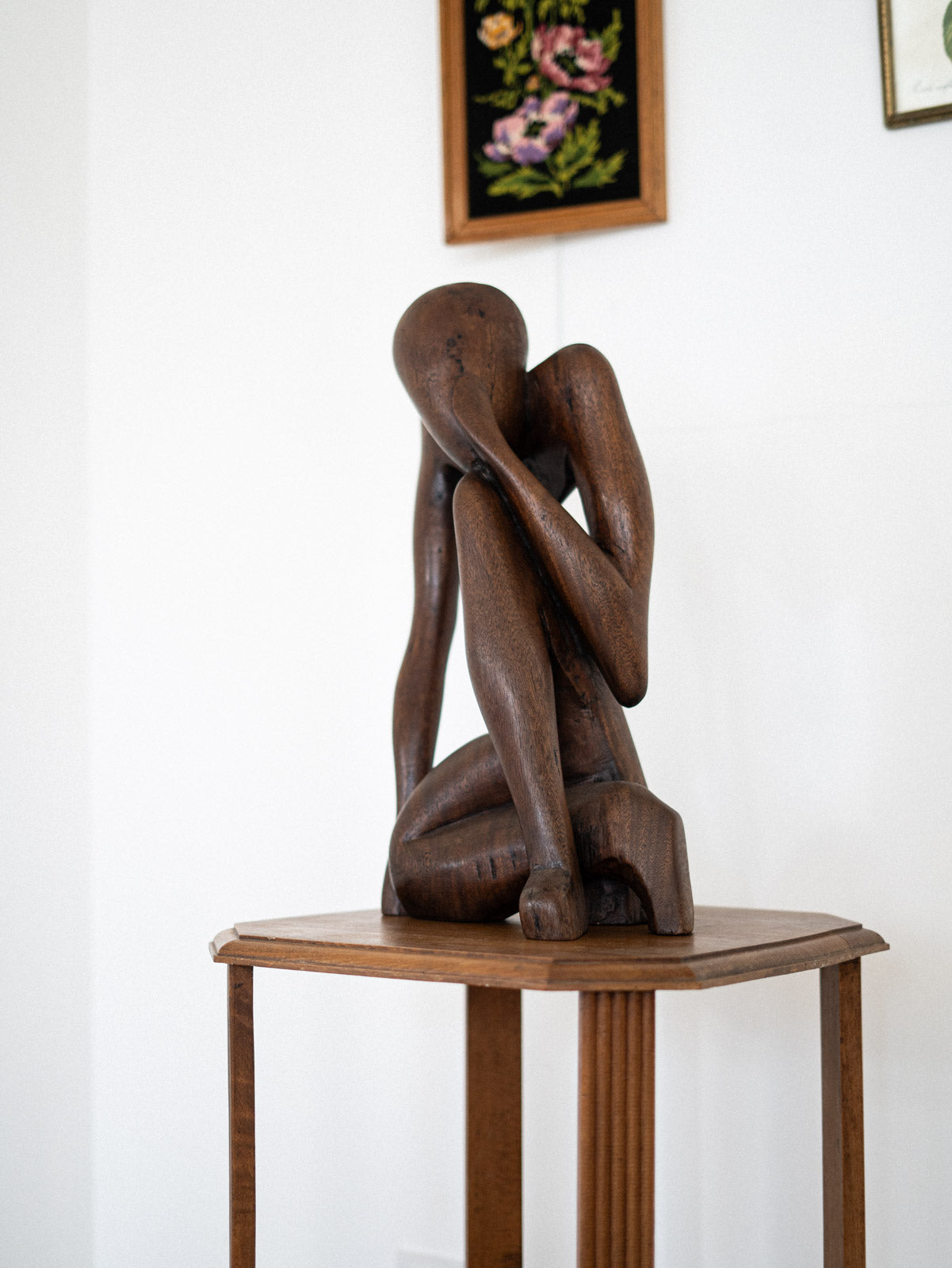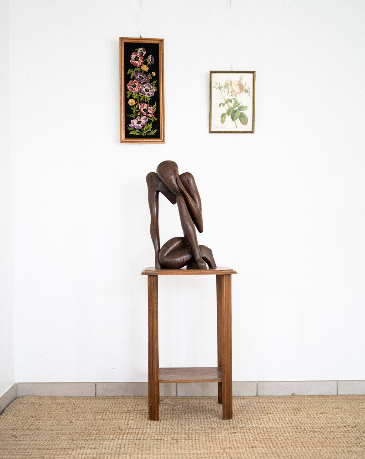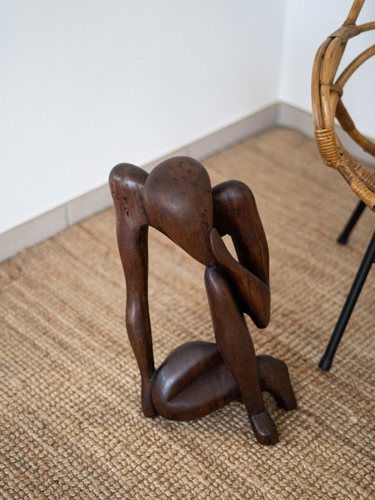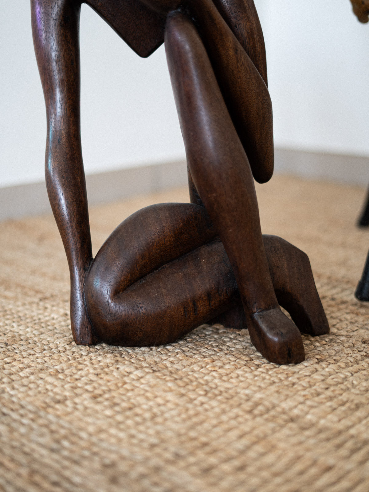 Discover our exotic wood statue with its minimalist lines, a true tribute to traditional craftsmanship. Its sleek silhouette and noble material bring a touch of natural elegance to your home. Ideal for enhancing a piece of furniture or complementing a modern decor, this unique piece blends beautifully with a variety of styles. Give your space a warm and refined ambiance with this refined sculpture.
