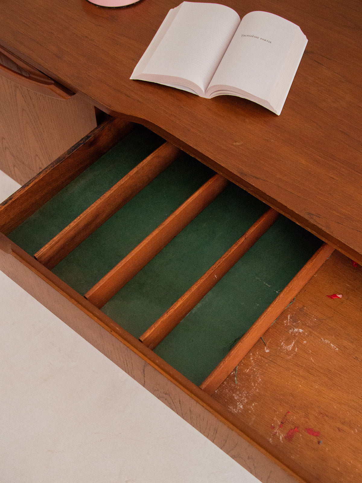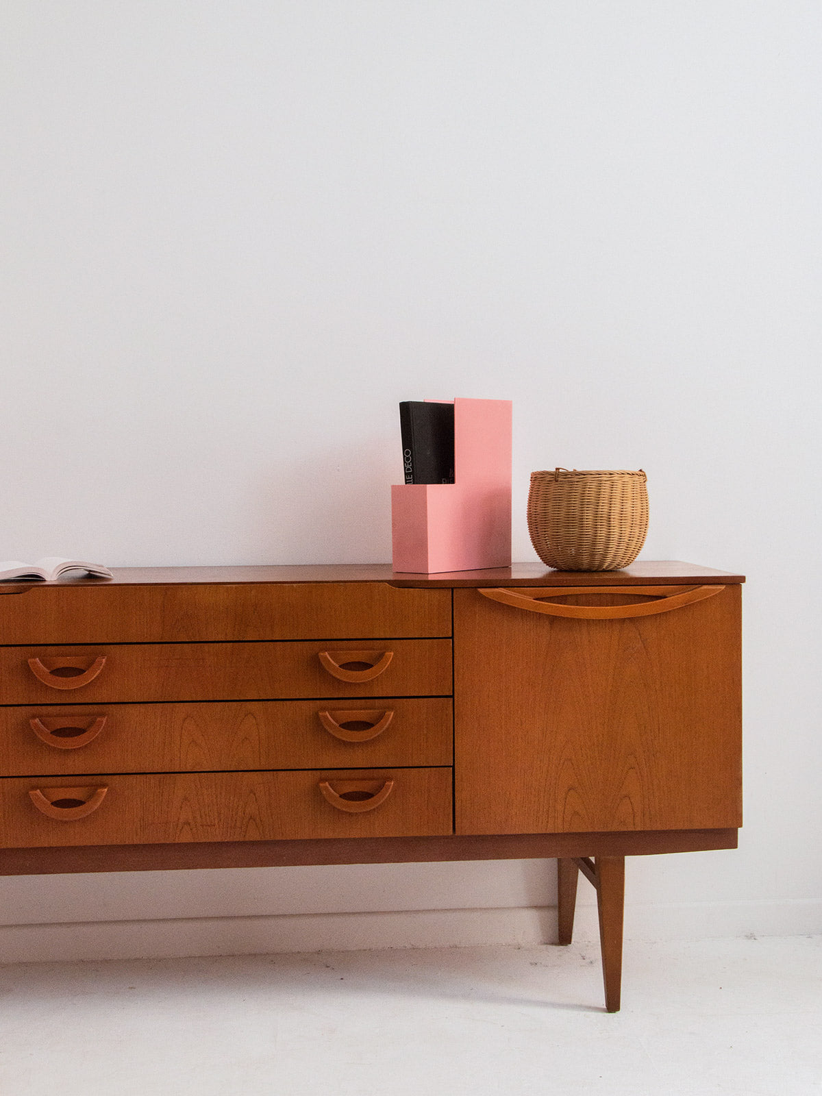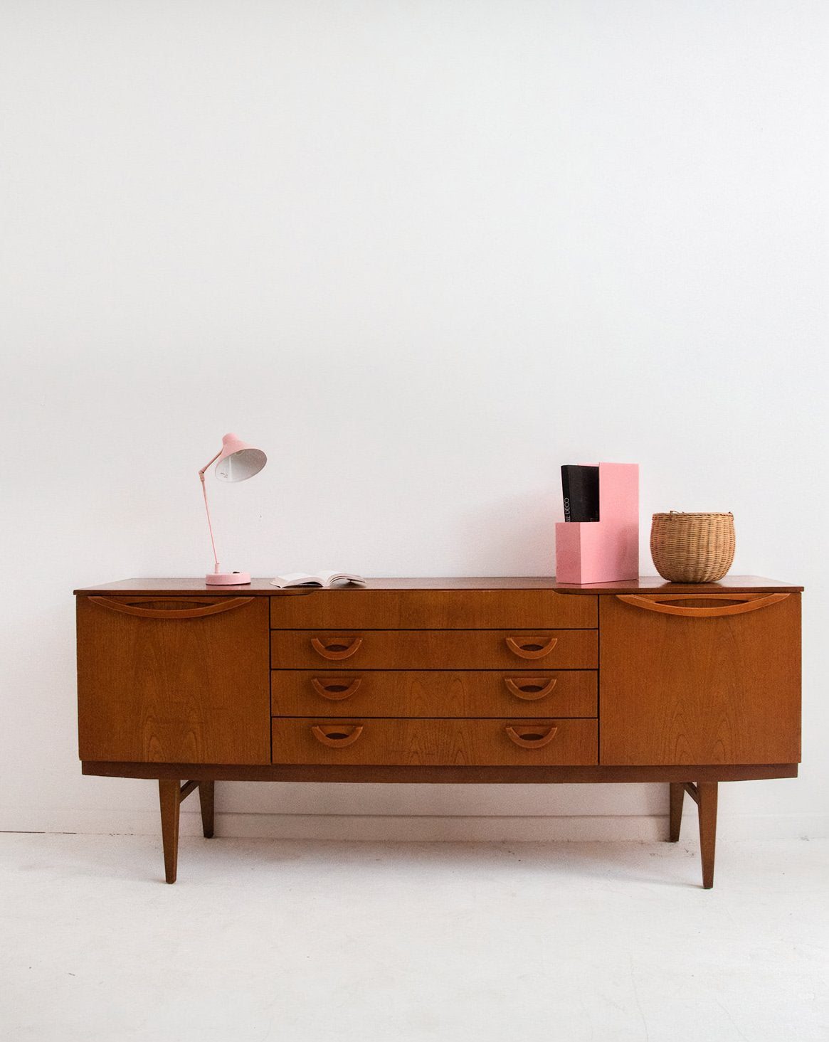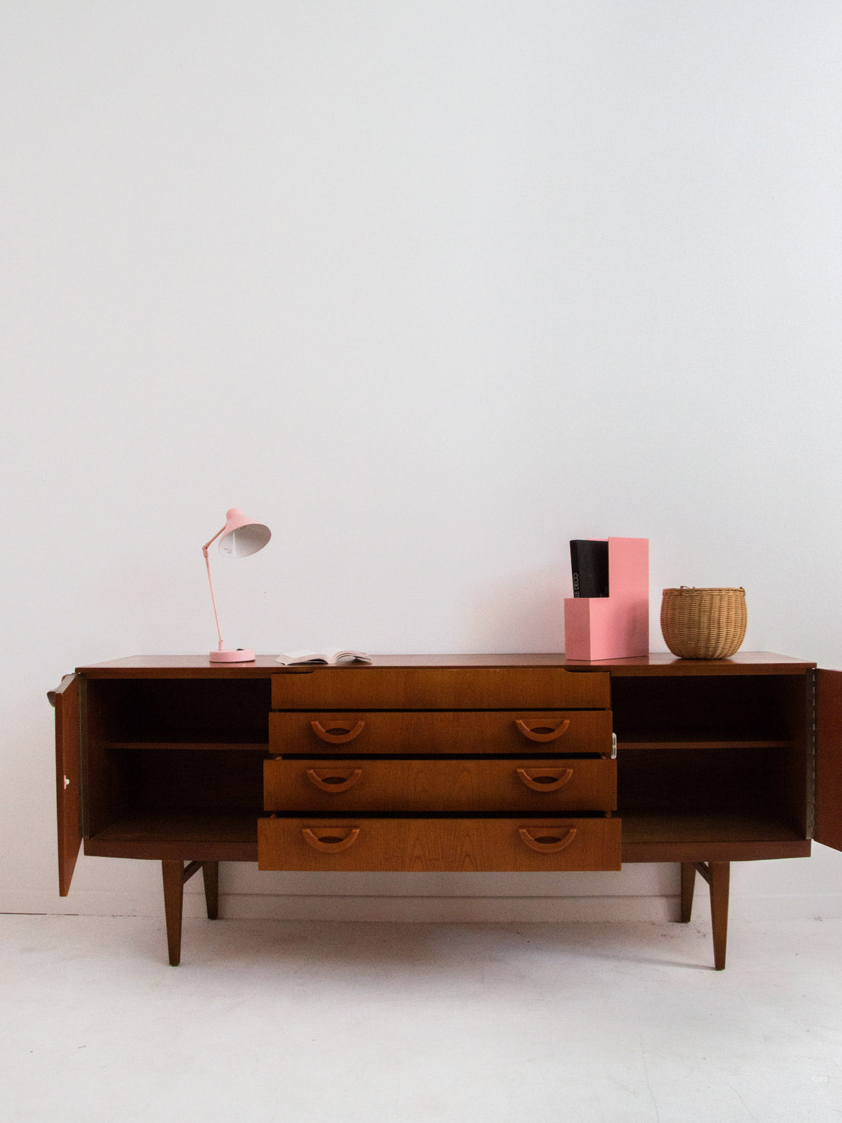 The first Scandinavian sideboards appeared in the 1950s. The Scandinavian-style sideboard is part of the innovative post-war furniture. Its airy lines and rectilinear volumes reflect the sober style of modernist inspiration, with all the characteristics of Norwegian, Swedish, and Finnish designers. The Scandinavian sideboard is made of traditional cabinetry, generally teak wood. It is used as a replacement for the traditional dining room buffet and now serves as a console table. For a designer and pleasant living room, the sideboard is the perfect piece of furniture!