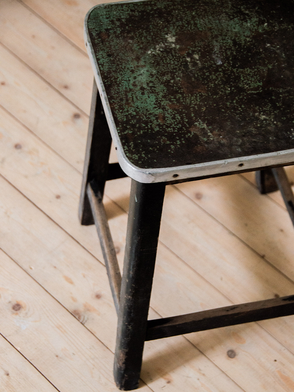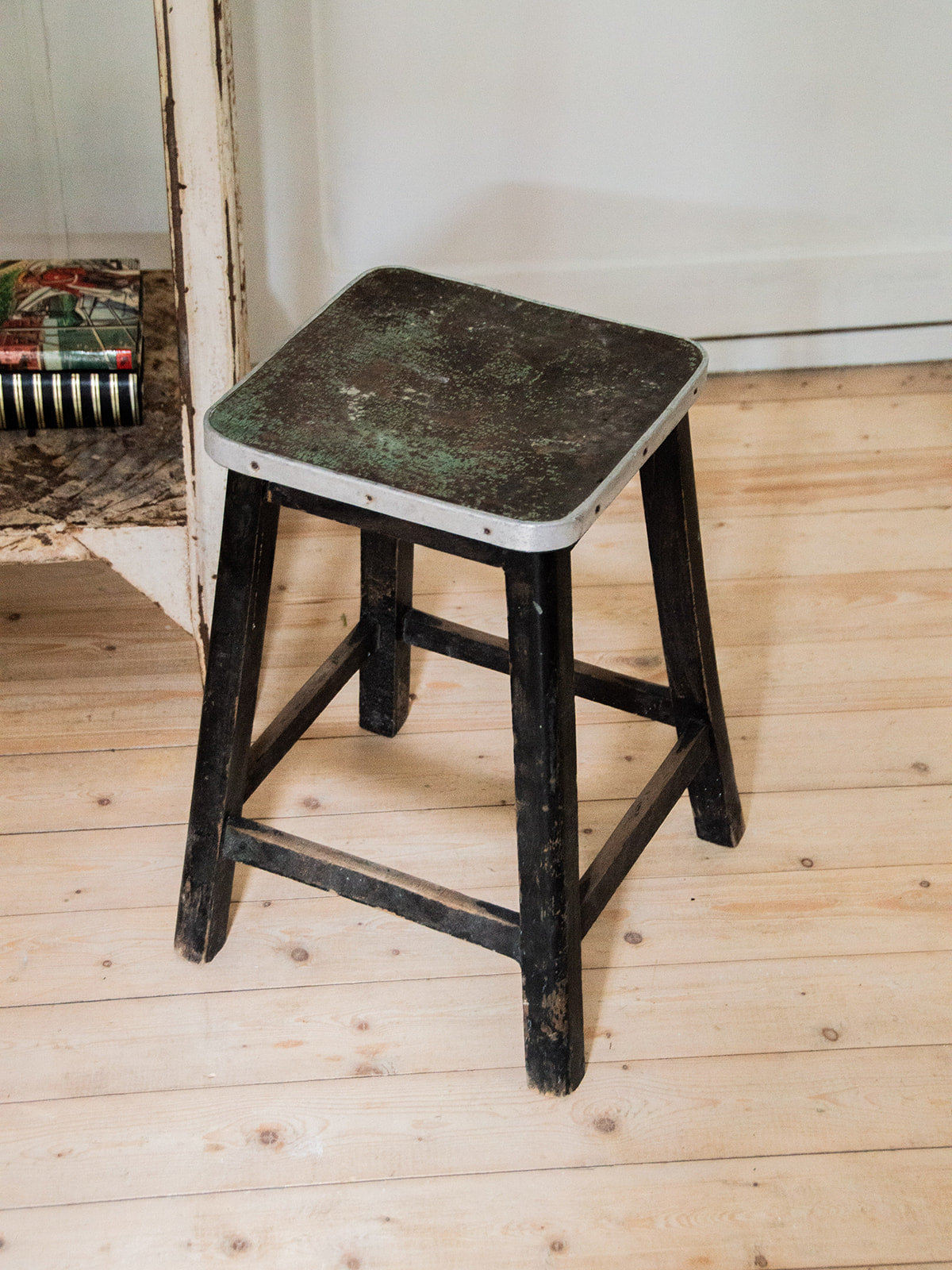 Discover our stool combining wood and metal, with four sturdy black legs. Its sleek and contemporary design easily adapts to all interior styles. Ideal for practical and elegant seating. It has some signs of wear on the legs and seat but which all make its charm.