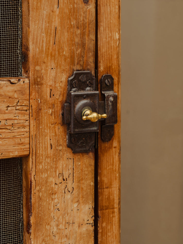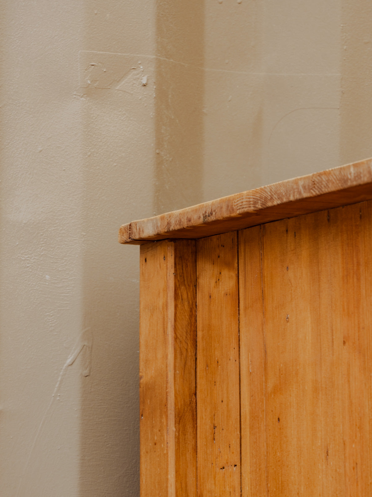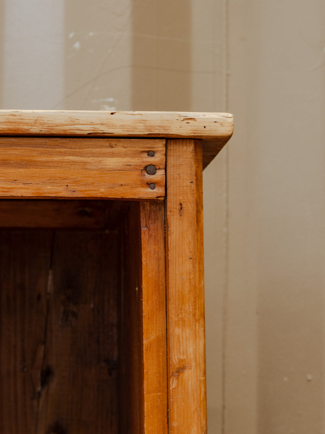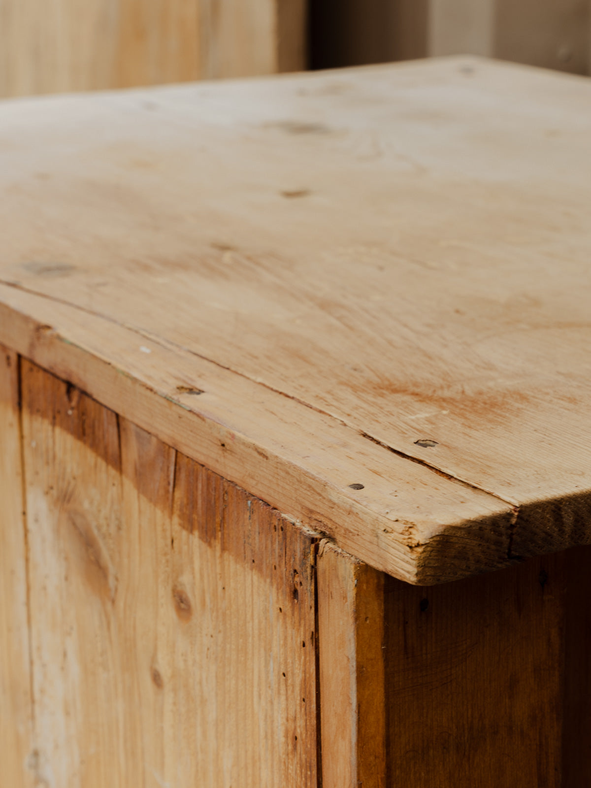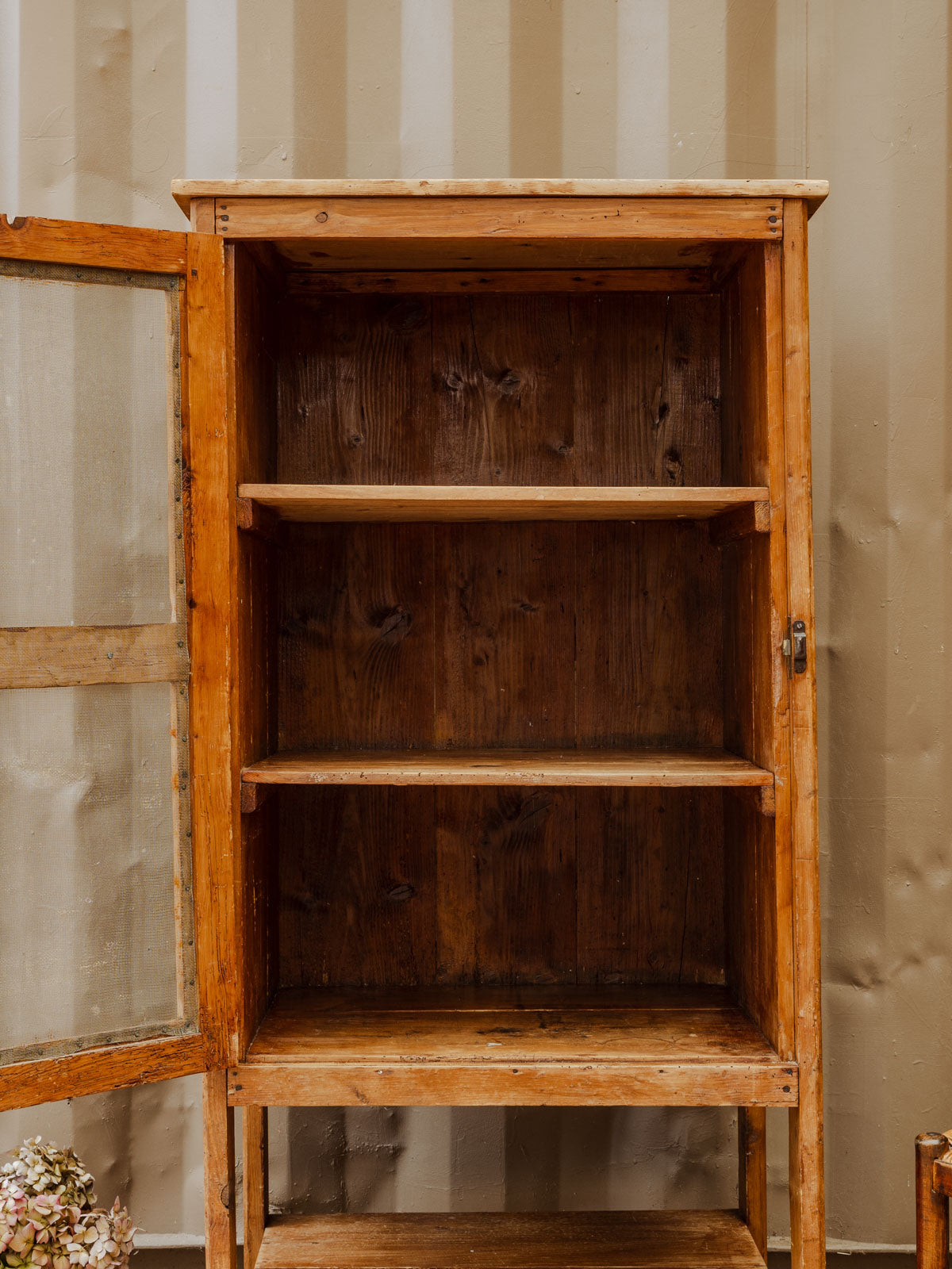 This solid pine pantry, inspired by Ardèche folk art, captivates with its warm patina and rustic authenticity. One leg has been reinforced to ensure flawless stability, while the carefully preserved split top remains fully functional. Three exterior storage levels provide generous space for your supplies, complemented by a discreet under-shelf. The original lock, faithful to tradition, ensures a secure closure and adds a touch of authenticity. Perfect for infusing your home with country charm.