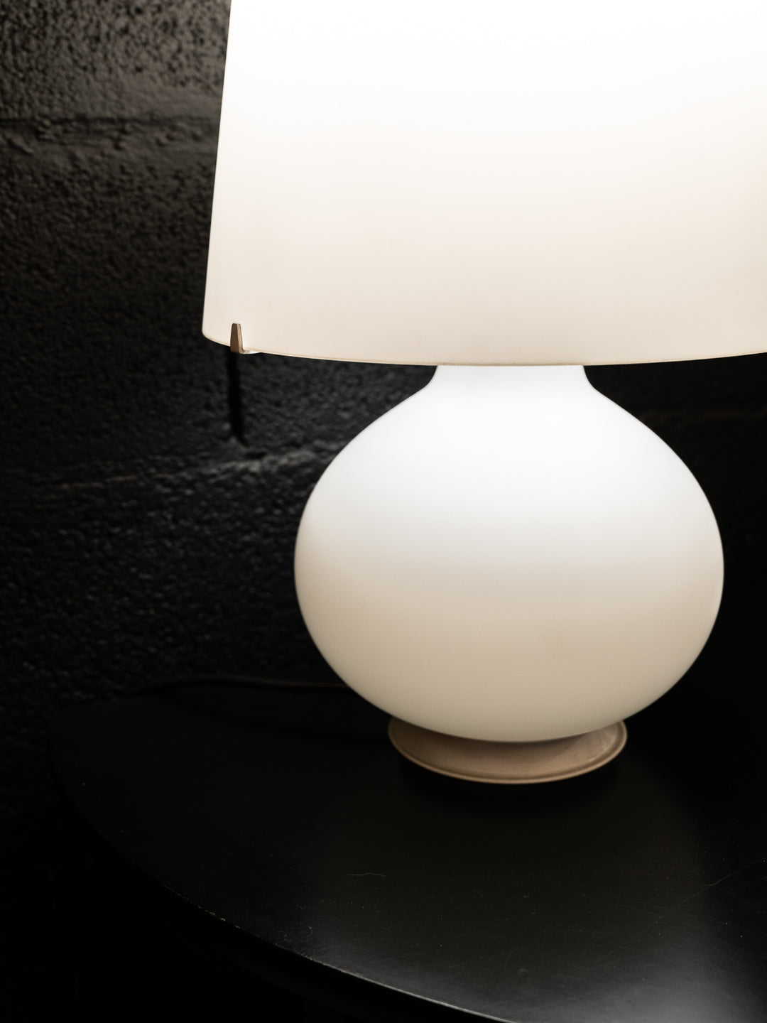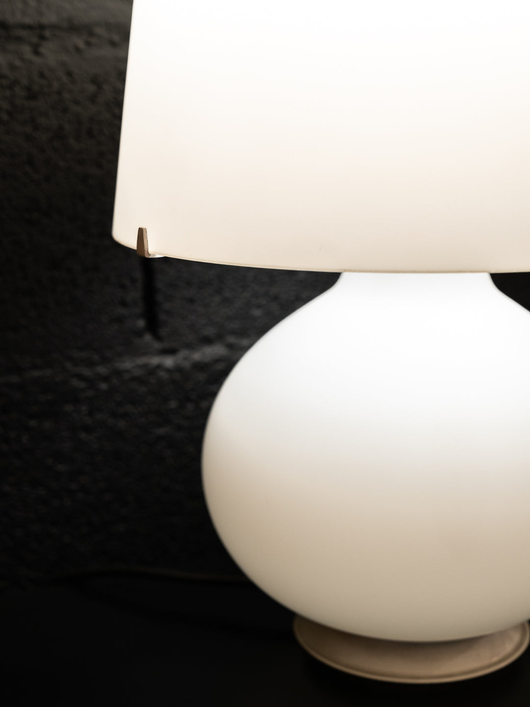 Discover the Fontana Arte lamp, designed by renowned designer Max Ingrand in the 1970s. This iconic piece, crafted from white blown glass, offers dimmable lighting with three brightness settings to suit your every need. Featuring a base and shade incorporating multiple light sources, it combines elegance and functionality, adding a timeless touch to your home. A true work of art that stylishly illuminates any space.