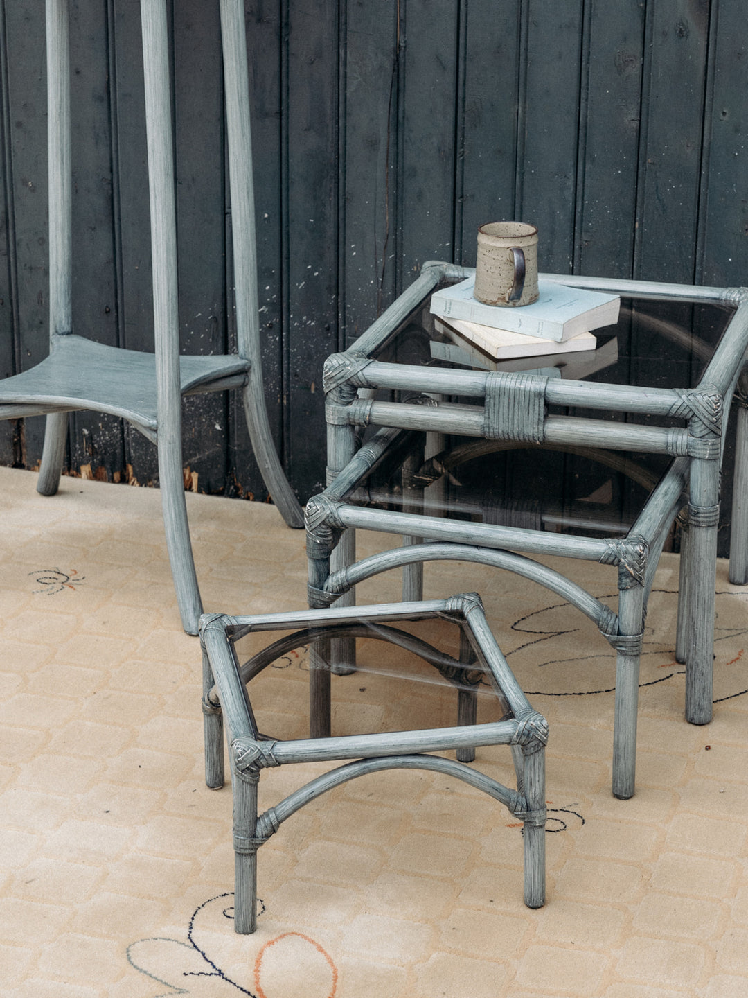 Discover this set of three Maugrion nesting tables in gray rattan, with an elegant and natural look. Their square glass tops add a touch of lightness and transparency. Practical and stackable, they adapt to any space. Their neat finish emphasizes a refined and timeless design. Bring a vintage and functional touch to your interior.