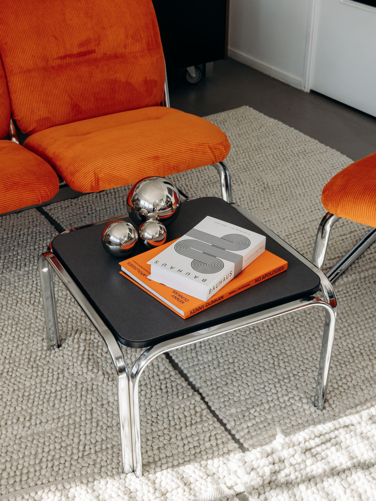 Bring a touch of modernity to your home with this coffee table with its chrome tubular base, which adds an industrial and elegant touch. Its wood veneer top provides a practical yet aesthetically pleasing surface, ideal for displaying your decorative items. The combination of chrome and wood creates a subtle contrast, blending perfectly with various interior styles. Compact and functional, it will find its place in a living room or office. A piece of furniture with a clean and timeless design, perfect for completing your space.