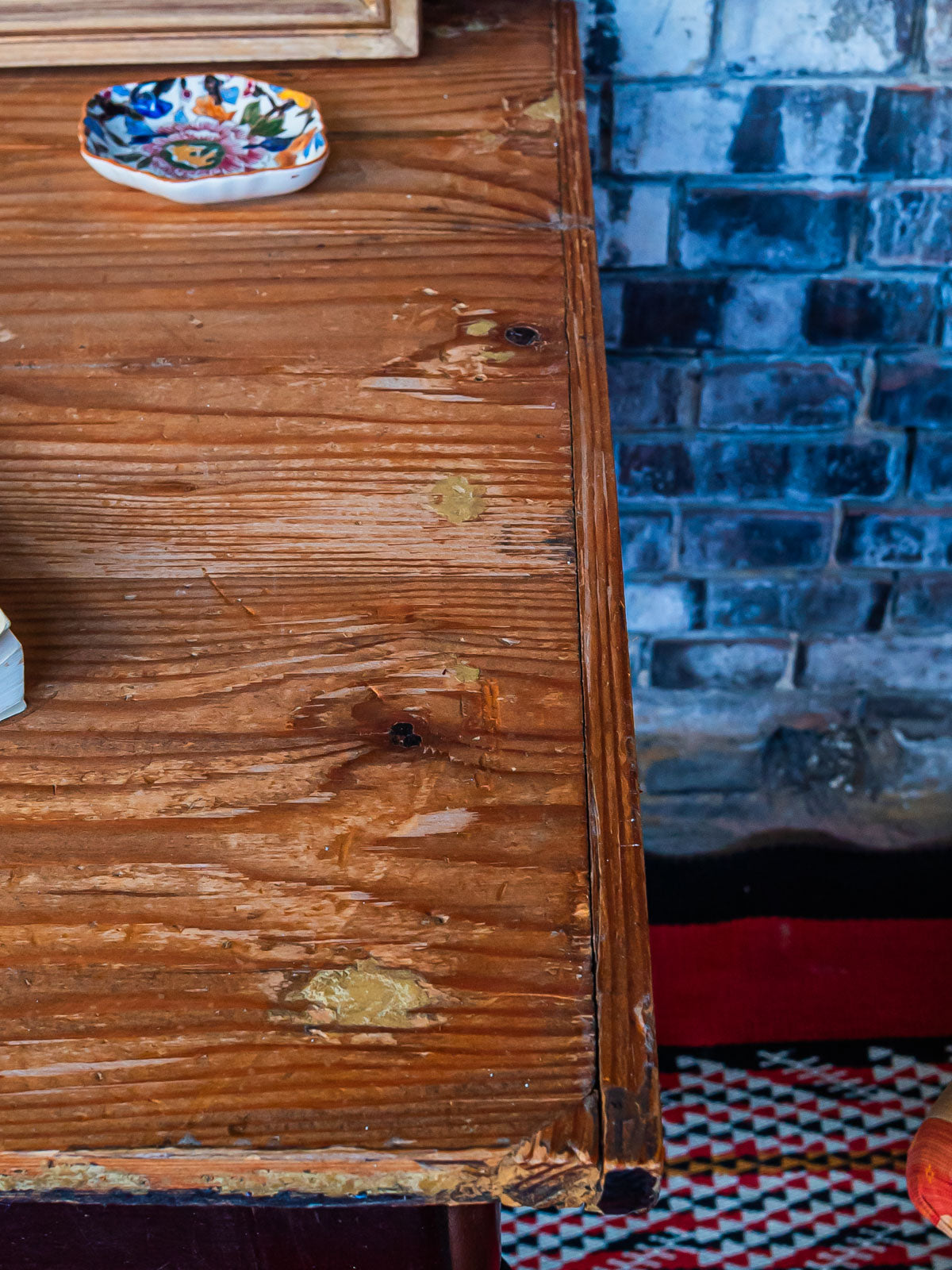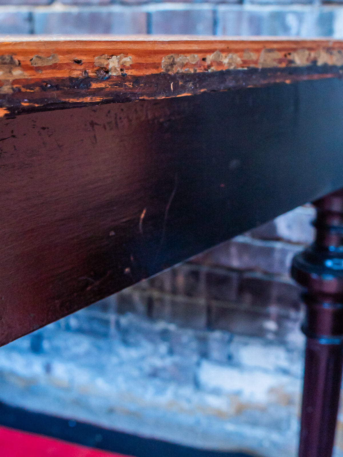 Discover this undeniably charming Napoleon III desk, combining character and elegance. Its raw wood top, combined with a black painted base, brings a vintage touch to your interior. Featuring a compartmentalized drawer, it offers practical storage space. Signs of wear and wood filler additions are visible, testifying to its unique history. An attractive piece for lovers of refined decor.