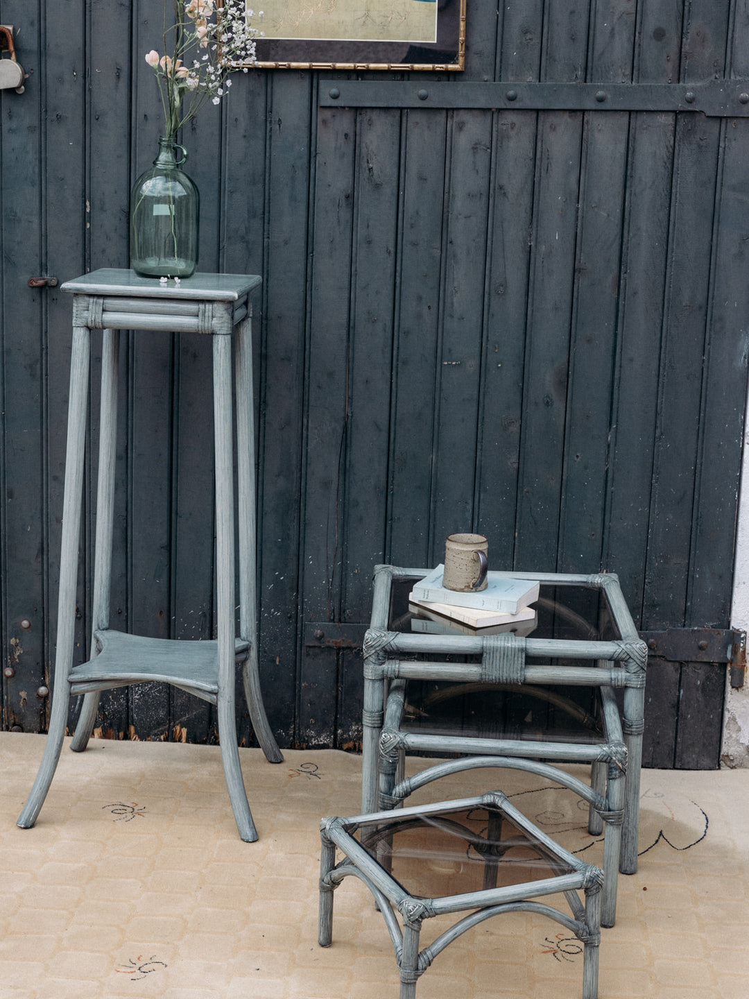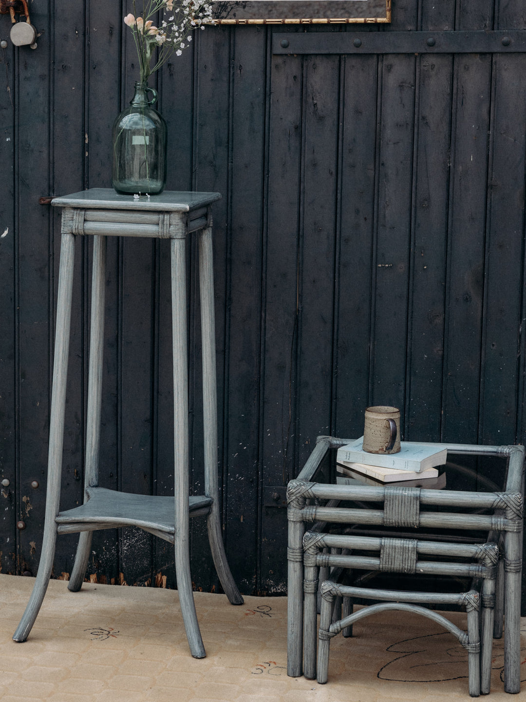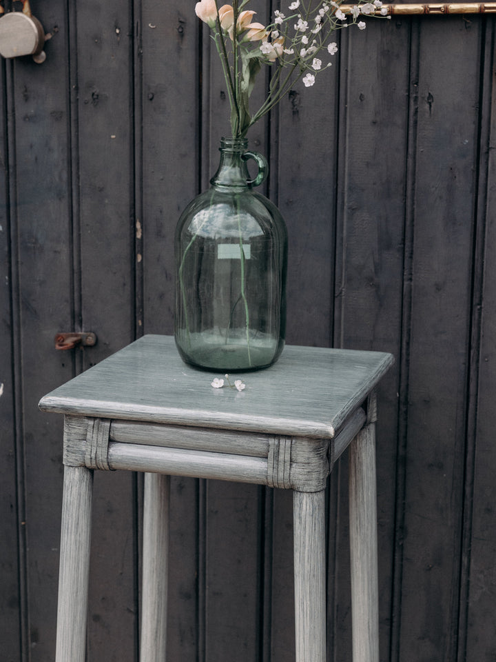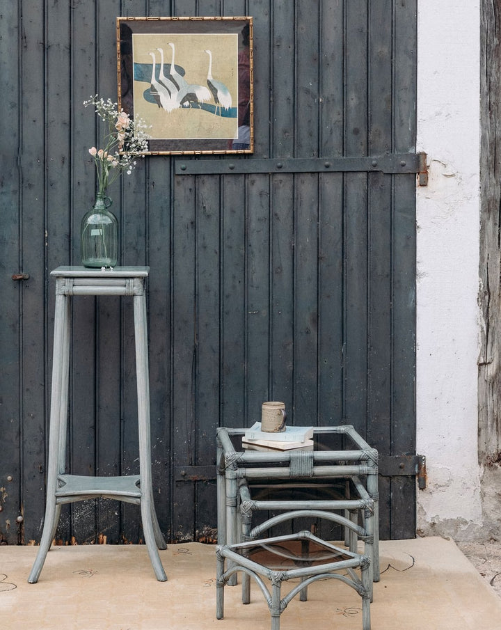 Discover this gray rattan side table, perfect for adding a natural touch to your home. Its light and airy design rests on flared legs for excellent stability. The low tabletop adds a practical surface for storage or a plant. Its timeless style blends easily into any room. Bring charm and functionality to your decor.