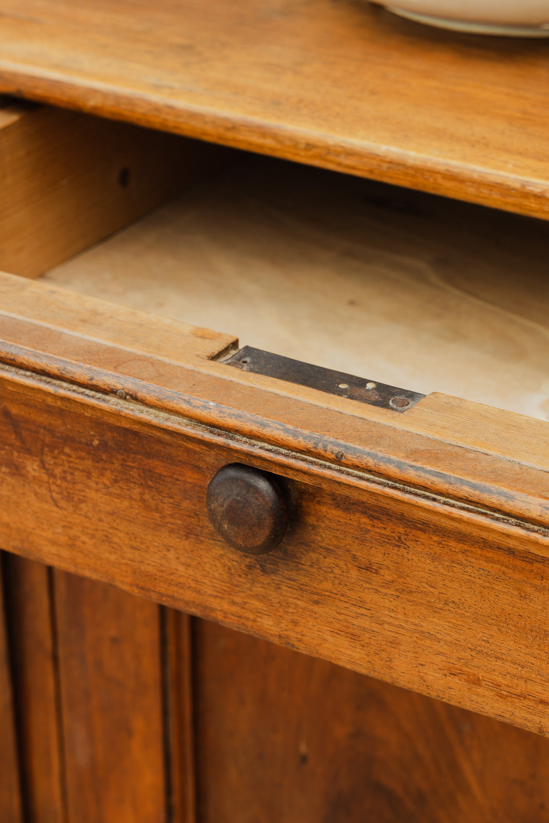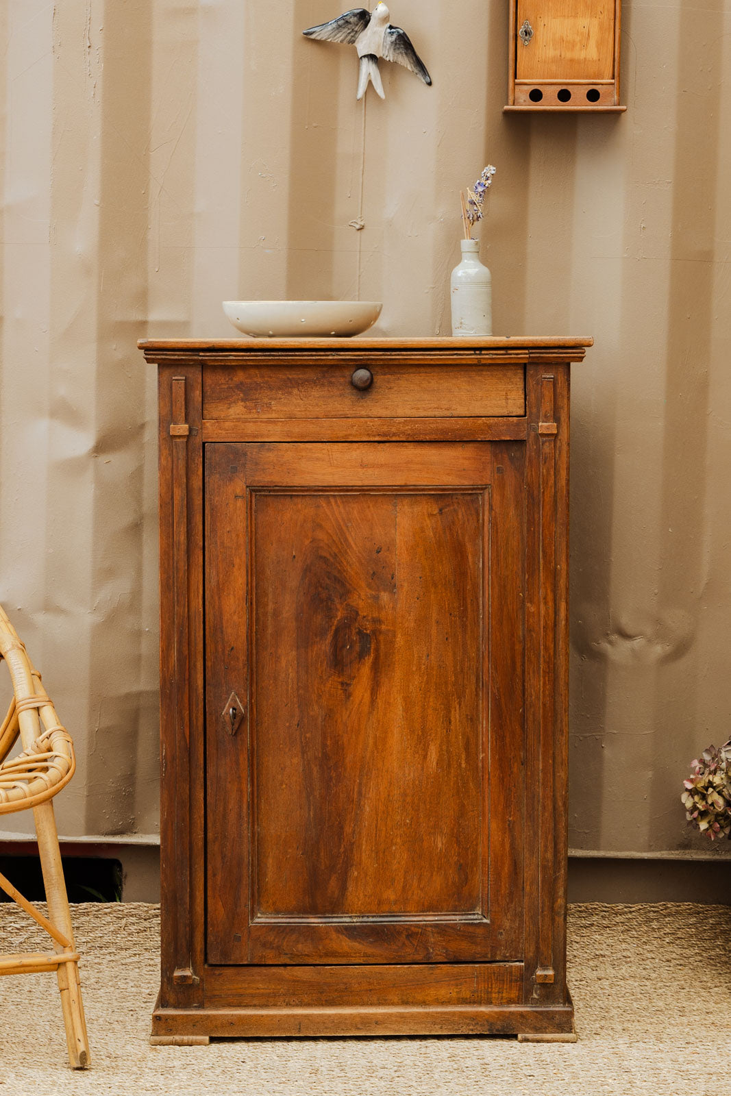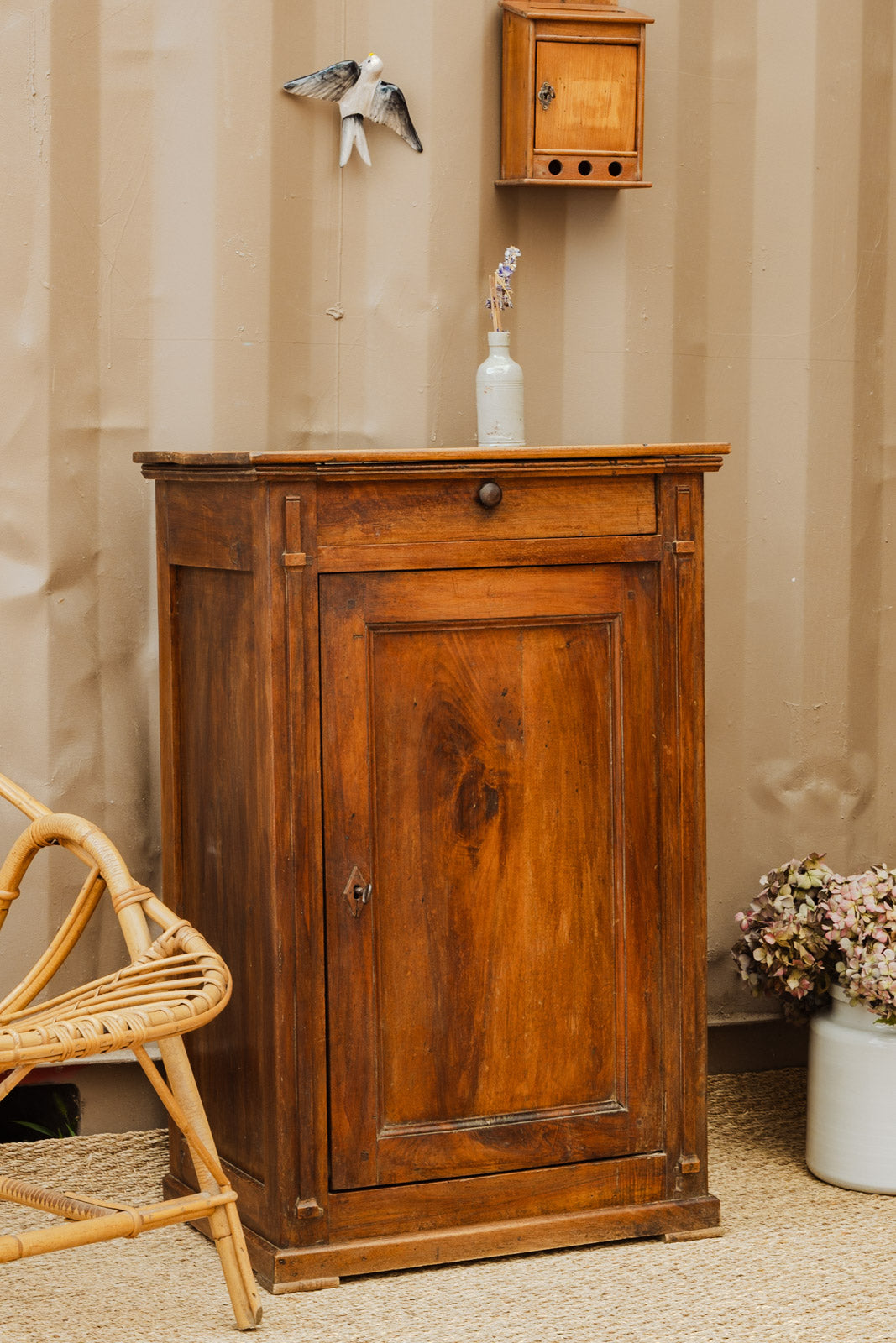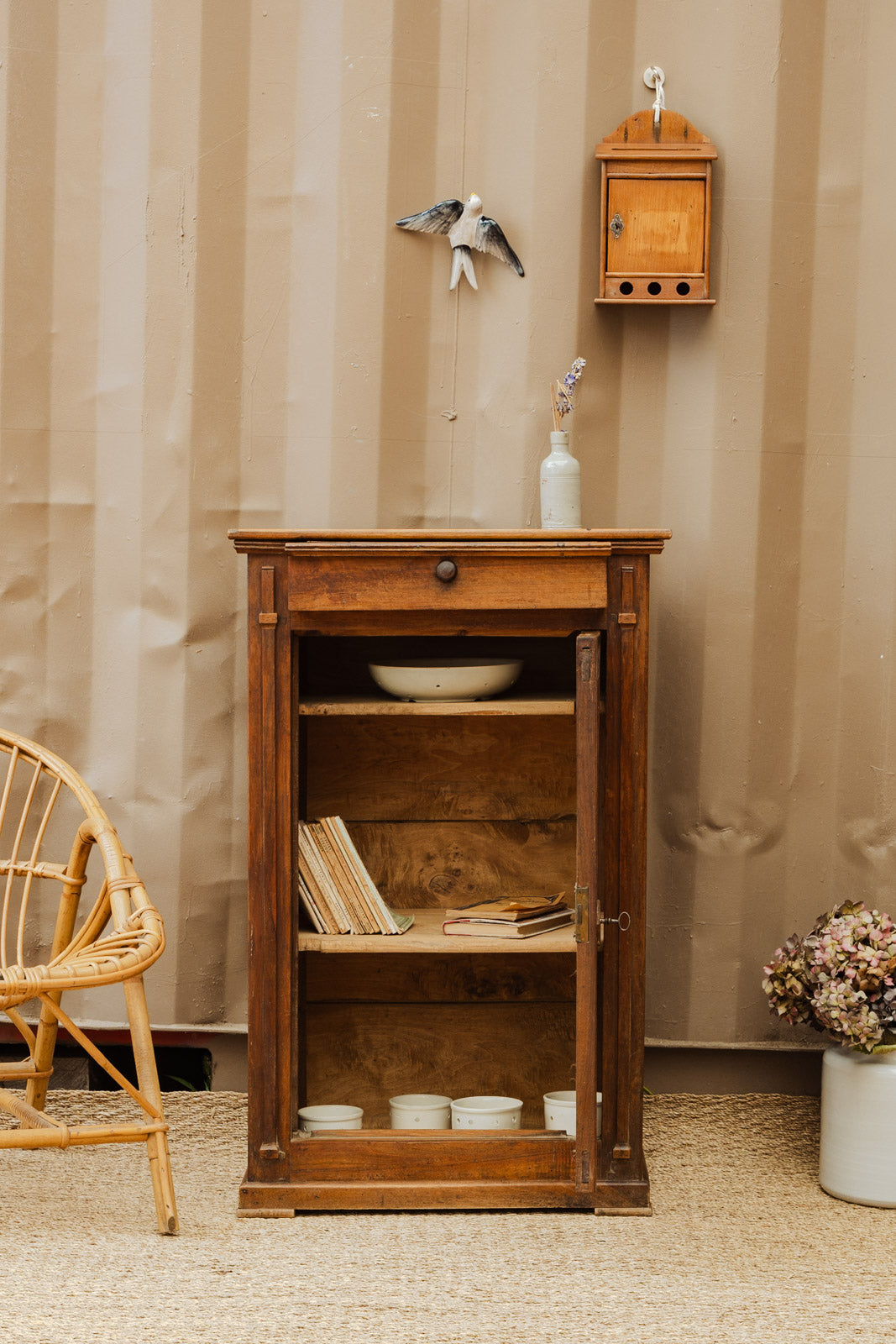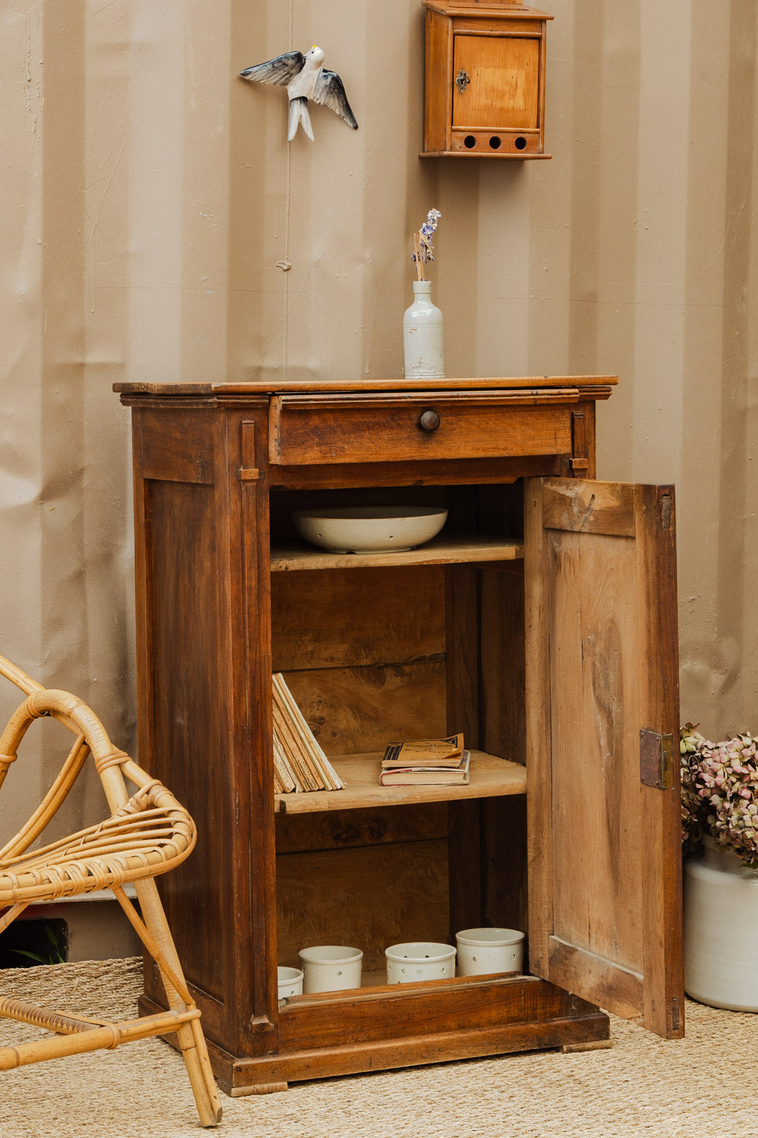 Discover this antique walnut jam cabinet, a unique piece combining charm and functionality. Featuring a practical drawer and two shelves, it will be ideal for storing your jams and other sweet treats. Delivered with its original key, this piece will bring a touch of authenticity to your home. Its timeless elegance makes it a must-have for lovers of vintage decor.