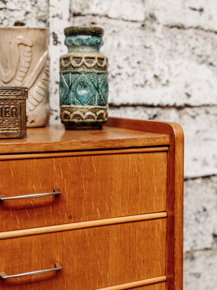 Discover this light wood sideboard with its sleek and timeless design, perfect for enhancing your interior. Its matching wooden handles and small compass feet give it a refined vintage touch. The slightly raised edges add a discreet yet refined detail. Functional and aesthetically pleasing, it offers ample storage space. Perfect for a warm and minimalist decor.