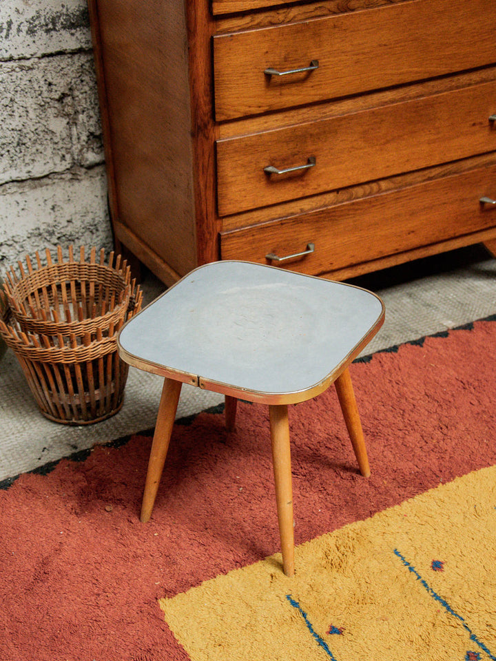 Bring a touch of freshness to your home with this elegant side table/stool with 4 compass legs. Its light blue top blends perfectly with the wooden legs, creating a warm and modern contrast. Versatile and practical, this accessory will fit into any room, whether as a side table or occasional seating. Leverage its charm and contemporary design to enhance your decor.