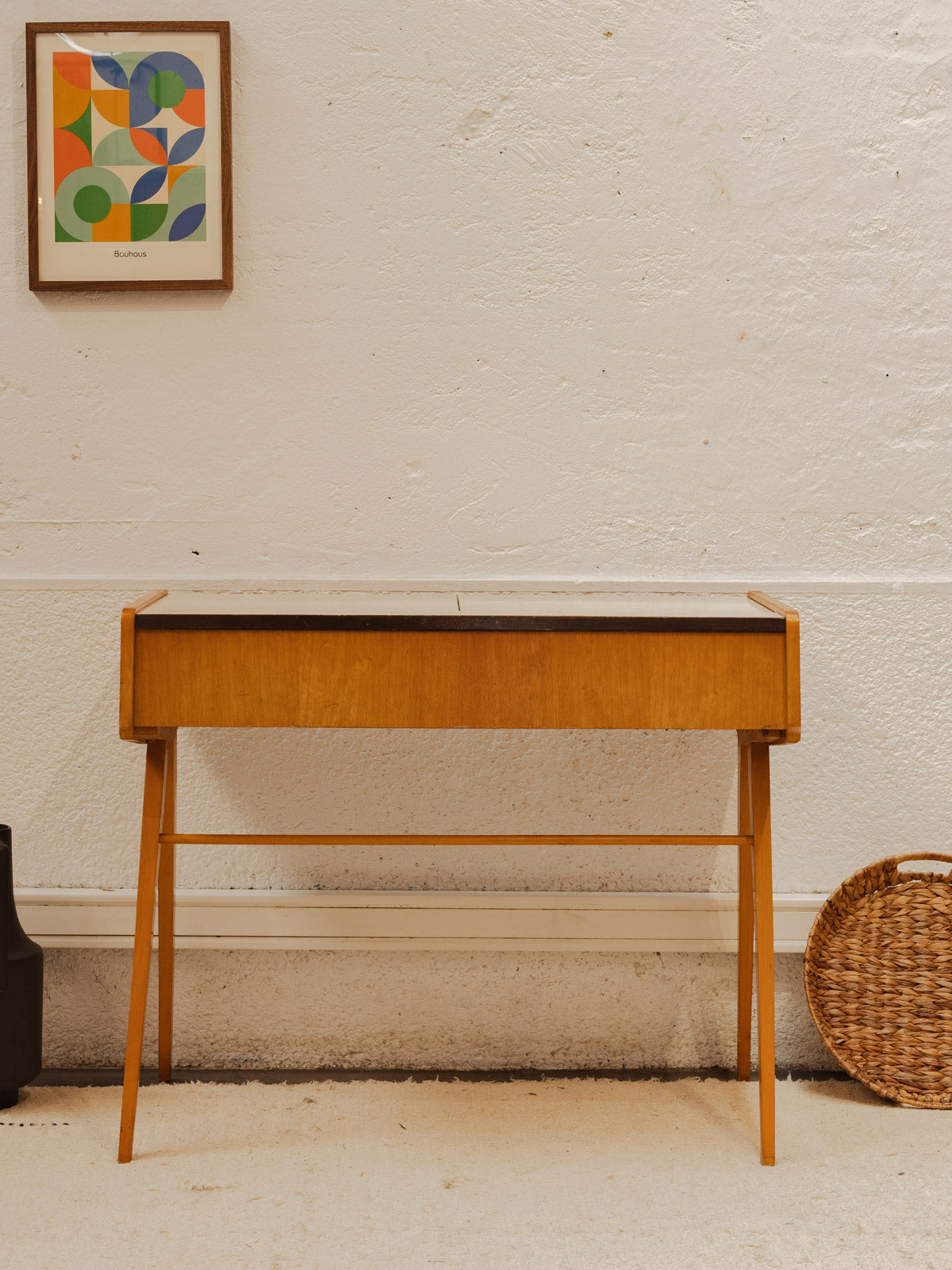 Discover our elegant dressing table, which also serves as a small desk or occasional console table. Made of wood, it features a practical and easy-to-maintain Formica top. This dressing table features a spacious niche and a built-in mirror, ideal for your beauty sessions or for adding a touch of style to your home. Its versatile and modern design will fit perfectly into any room of your home.