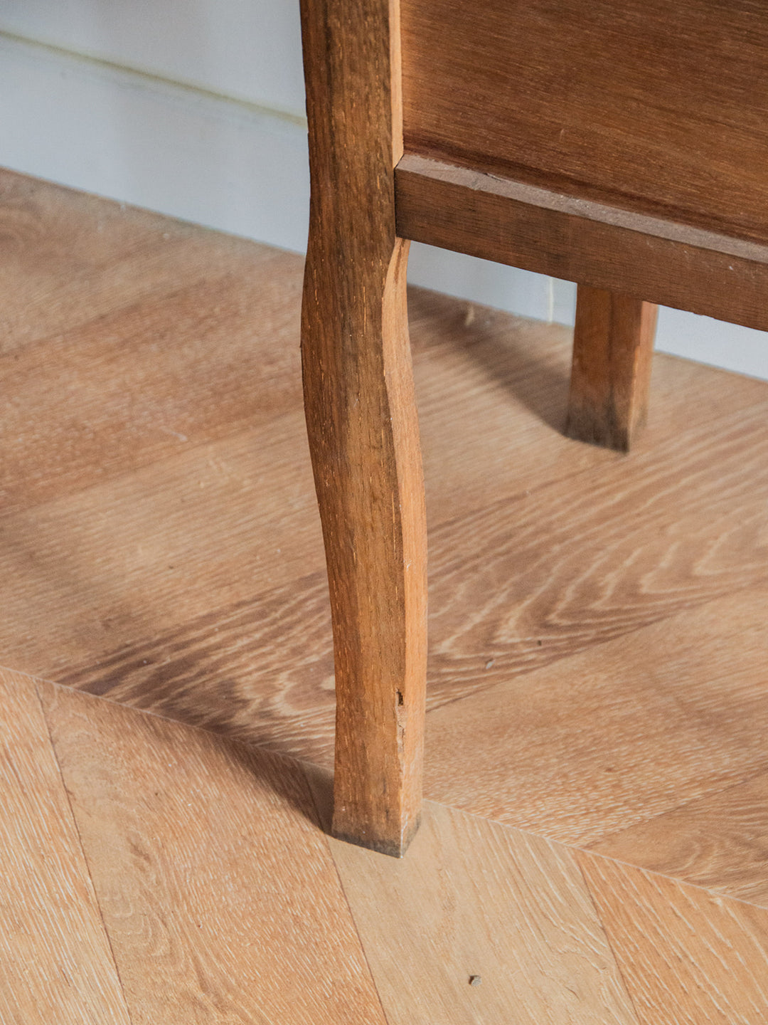 Discover this charming little wooden bedside table, which combines elegance and practicality. With its ornate legs and vintage design, it will bring a warm touch to your bedroom. It features a small drawer and a compartment for optimal storage. The signs of wear on the top add character to the whole, making this bedside table a unique piece with a story to tell.