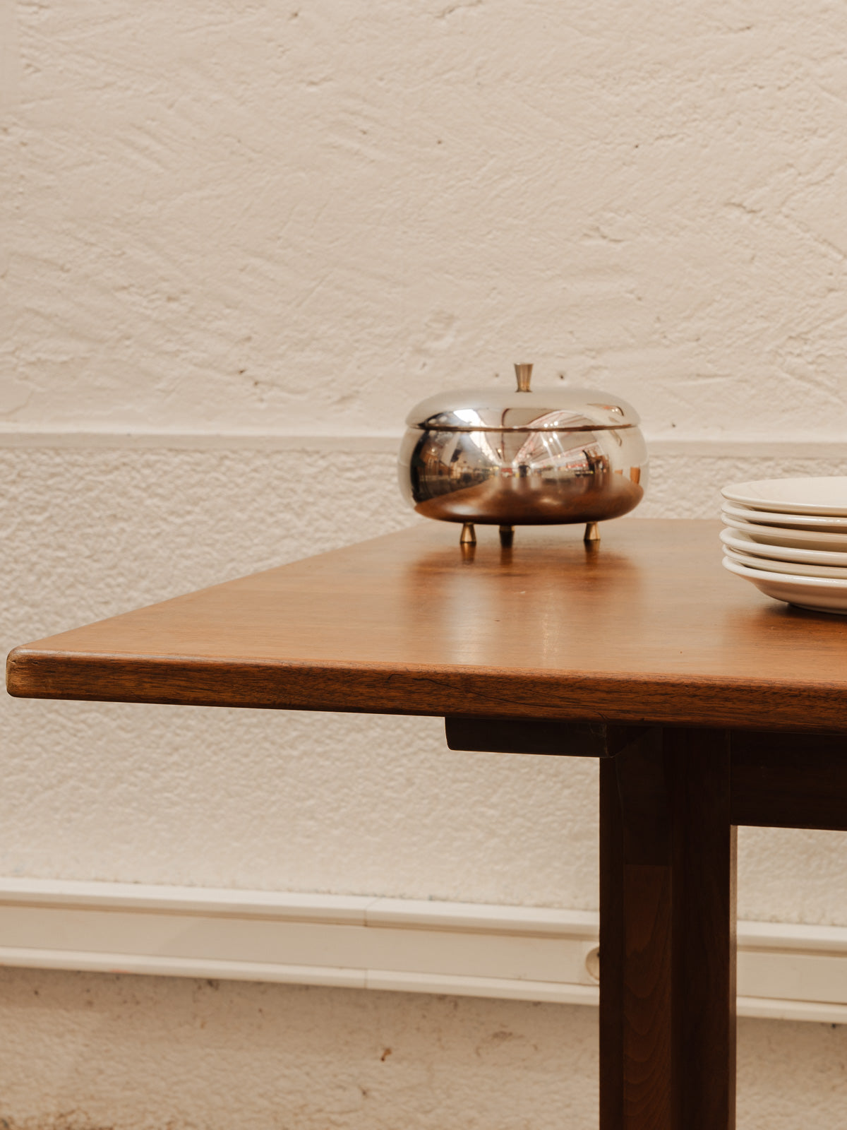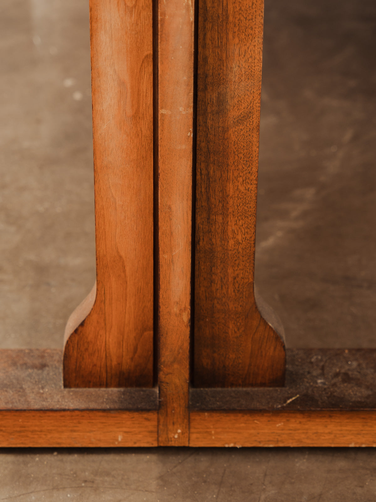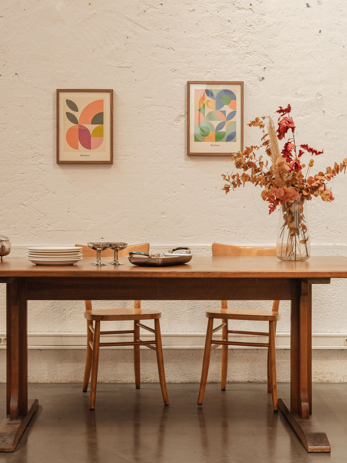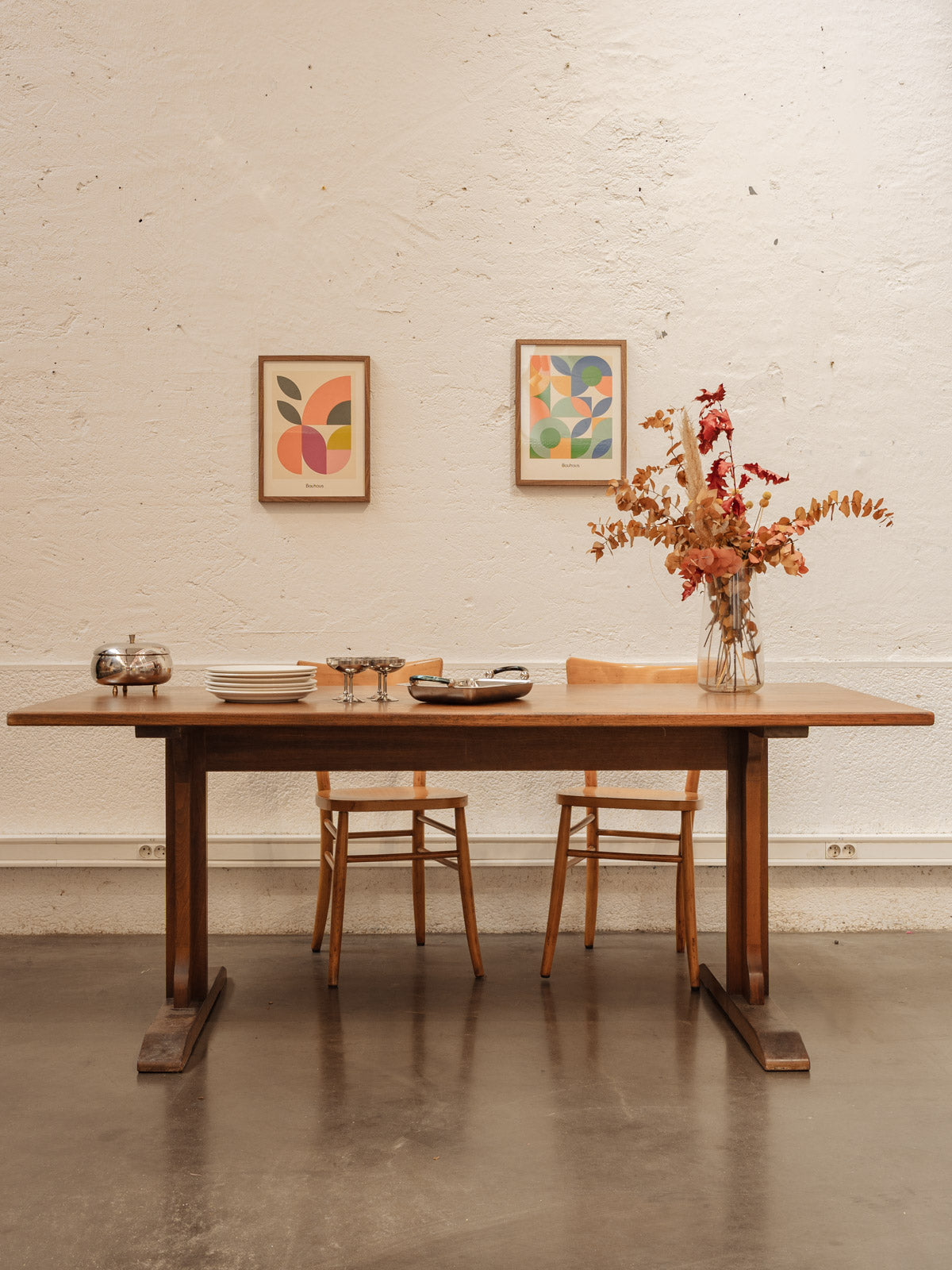 Discover this wooden trestle-style dining table, emblematic of the 1960s, which will enhance your interior. With its ideal seating capacity for 6 to 8 people, it embodies the chic and functional spirit of Charlotte Perriand. Its Italian design combines elegance and simplicity, making it a must-have for convivial meals. Bring a warm, retro touch to your dining room with this unique and timeless piece.